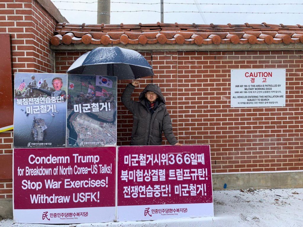 민중민주당은 3일 미대사관앞평화시위1263일째, <무기한비상행동>829일째, 미대사관포위시위307일째, 평택험프리스기지앞미군철거시위368일째진행했습니다.