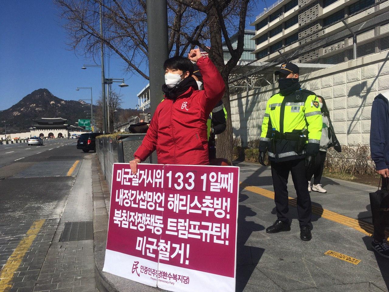 <북침전쟁연습완전중단! 사드철거! 미군철거!> 민중민주당 미대사관포위시위