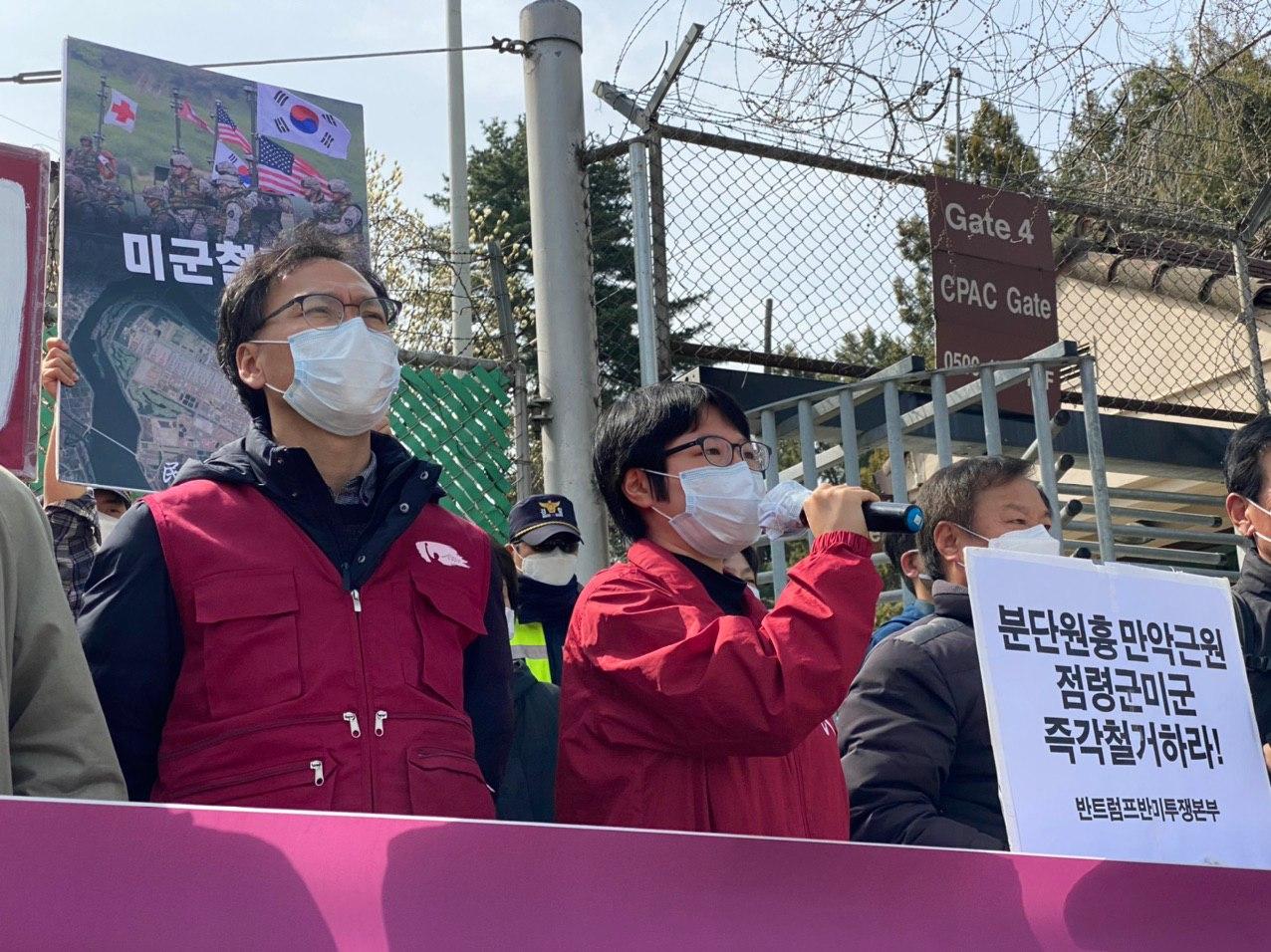 21일 반트럼프반미투쟁본부는 용산미군기지앞에서 <미군유지비인상반대!미군기지환수!미군철거!> 기자회견집회를 진행했다.