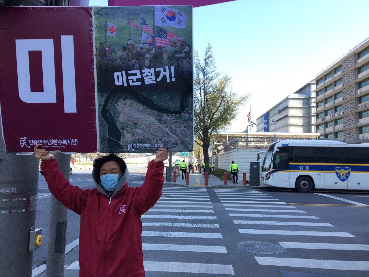 주남미군사령부가 있는 평택험프리스기지앞에서는 <북미협상결렬 트럼프규탄!>·<전쟁연습중단! 미군철거!>구호피시를 들고 미군철거시위를 461일째 진행했다.