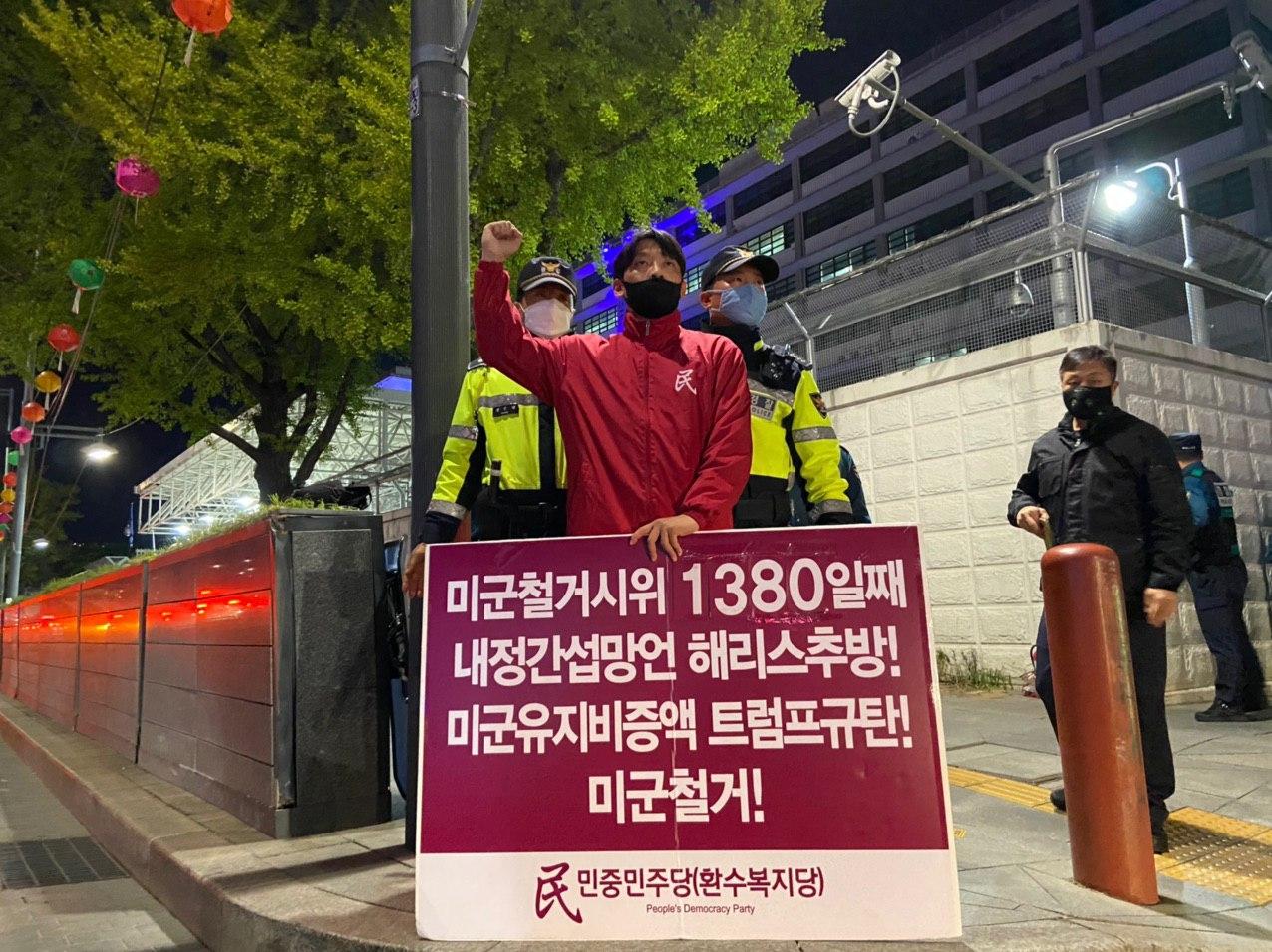 29일 미대사관앞에서 <내정간섭망언 해리스추방! 북침전쟁책동 트럼프규탄! 미군철거!>촉구 평화시위를 1380일째 진행했다.