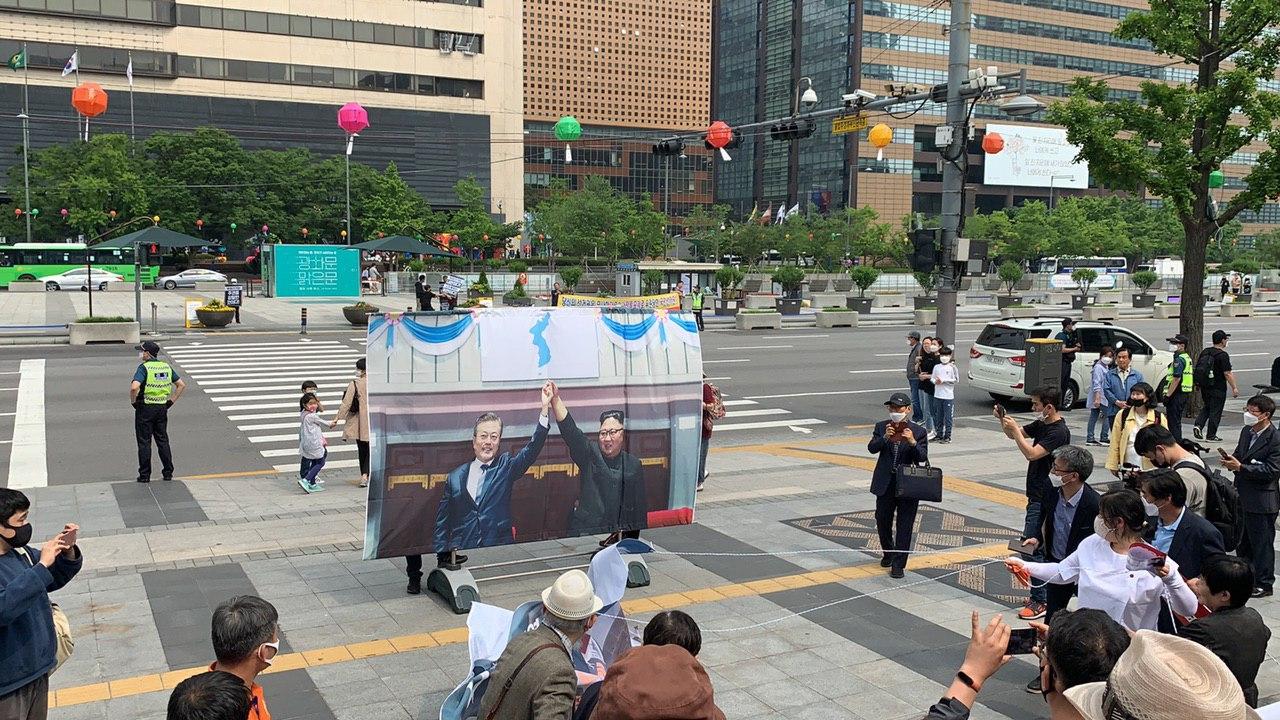 연대투쟁실천民기자회견·집회 민중민주당 〈5.24조치해제! 남북공동선언이행!〉 공동기자회견 참여 2020년 5월 23일 FacebookTwitter 23일 민중민주당(환수복지당)은 세종문화회관앞에서 <5.24조치해제! 남북공동선언이행!> 공동기자회견에 참여했다. 참가자들은 <판문점선언이행><민족대단합실현>등의 구호를 들었다.