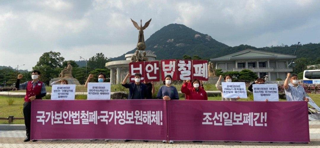 우리는 현시기 가장 중요한 민주주의의 과제를 보안법(국가보안법)철폐·정보원(국가정보원)해체·조선일보폐간이라고 규정한다. 희대의 파쇼악법 보안법은 최우선적으로 반드시 철폐돼야 한다. 일제시대 치안유지법을 계승한 보안법은 같은 동포인 북은 <주적>이라 규정하고 통일애국세력의 정당한 활동을 <이적활동>이라 낙인찍는 전대미문의 반민주·반통일악법이다. <탈북자>단체가 감행하는 대북침략책동인 대북전단살포망동은 처벌하지 못하면서 유튜브에 공개된 민중가요 <혁명동지가>를 불렀다는 이유로 보안법에 의해 처벌되는게 지금의 현실이다. 헌법이 보장하는 사상·표현·결사의 자유를 철저히 유린하는 위헌법률인 보안법을 폐지하지 않는 한 우리사회는 예나 지금이나 인권의 불모지, 민주주의의 동토대라는 오명에서 벗어날 수 없으며 민주주의와 평화통일은 요원할 수밖에 없다.