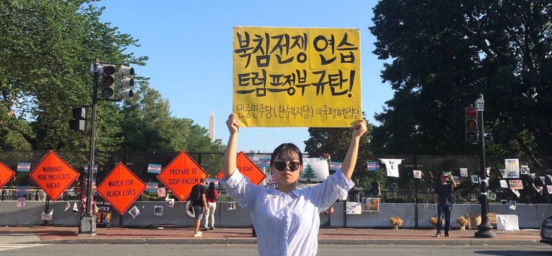 민중민주당(환수복지당) 미국평화원정단은 8일(현지시간) 워싱턴D.C백악관앞에서 <전쟁화근 만악근원 미군즉각철거!>, <미군유지비증액 트럼프정부규탄!>, <북침전쟁연습 트럼프정부규탄!> 등을 촉구하는 평화시위를 총1158일째 진행했다.