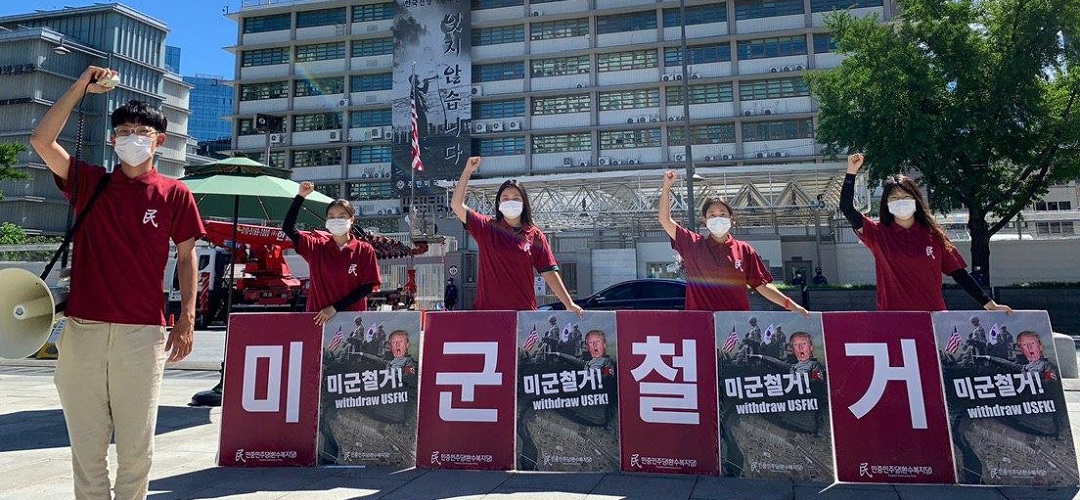 민중민주당(환수복지당)은 26일 미대사관앞에서 <내정간섭망언 해리스추방! 미군유지비증액! 트럼프규탄! 미군철거!>촉구 평화시위를 1468일째 진행했다.