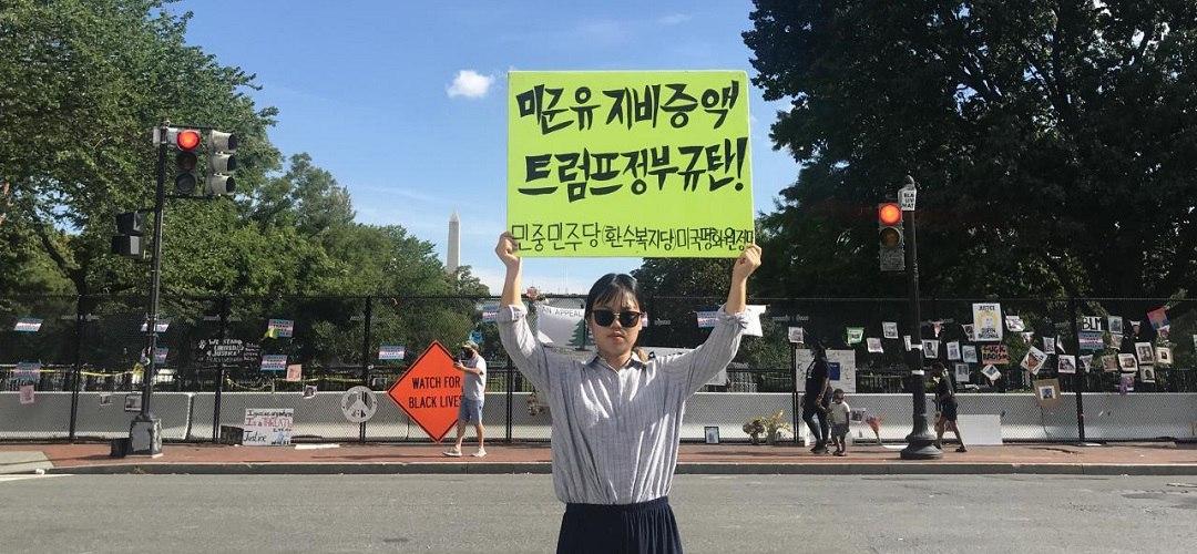 민중민주당(환수복지당) 미국평화원정단은 23일(현지시간) 워싱턴D.C백악관앞에서 <전쟁화근 만악근원 미군즉각철거!>, <미군유지비증액 트럼프정부규탄!>, <북침전쟁연습 트럼프정부규탄!> 등을 촉구하는 평화시위를 총1173일째 진행했다.
