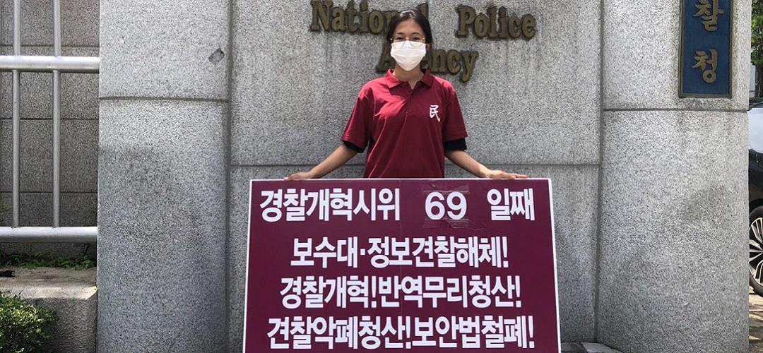 Home 실천 민중민주당, 〈친미극우무리·친미친극우견찰규탄〉 평화시위125일째 정보원앞보안법철폐투쟁70일째 견찰청앞보수대·정보견찰해체투쟁69일째 청와대앞악폐청산투쟁52일째