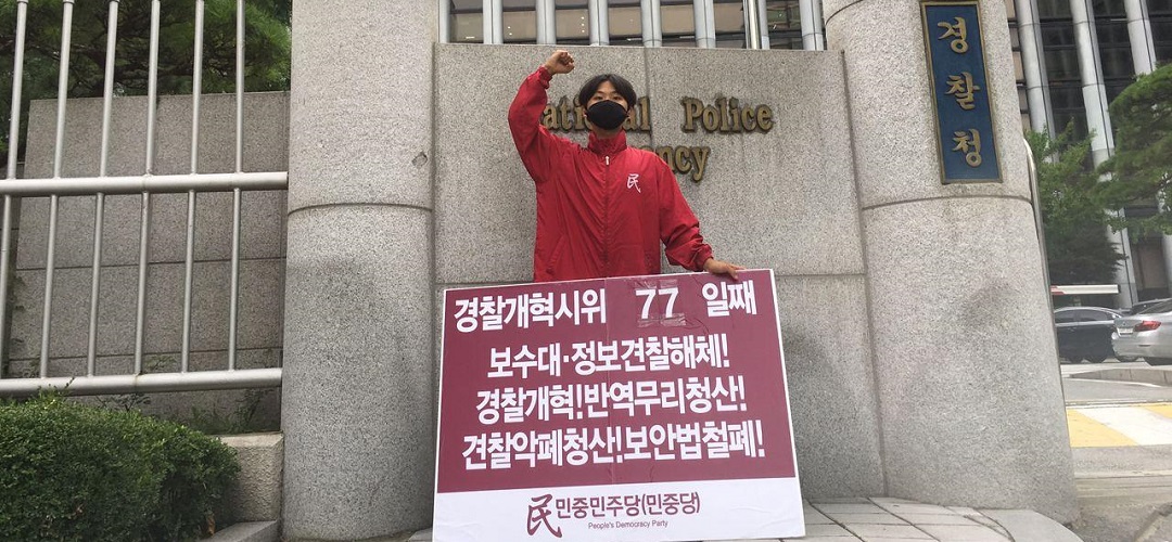 민중민주당, 〈친미극우무리·친미친극우견찰규탄〉 평화시위133일째 정보원앞보안법철폐투쟁78일째 견찰청앞보수대·정보견찰해체투쟁77일째 청와대앞악폐청산투쟁60일째