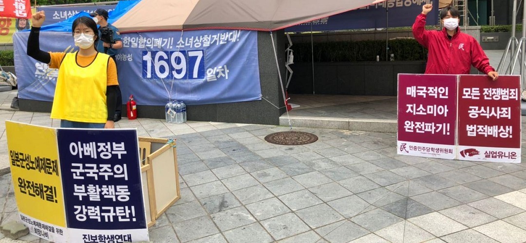 21일 반일행동(반아베반일청년학생공동행동)은 <매국적한일합의폐기! 전쟁범죄사죄배상!>촉구 소녀상농성을 1697일째 진행했다.