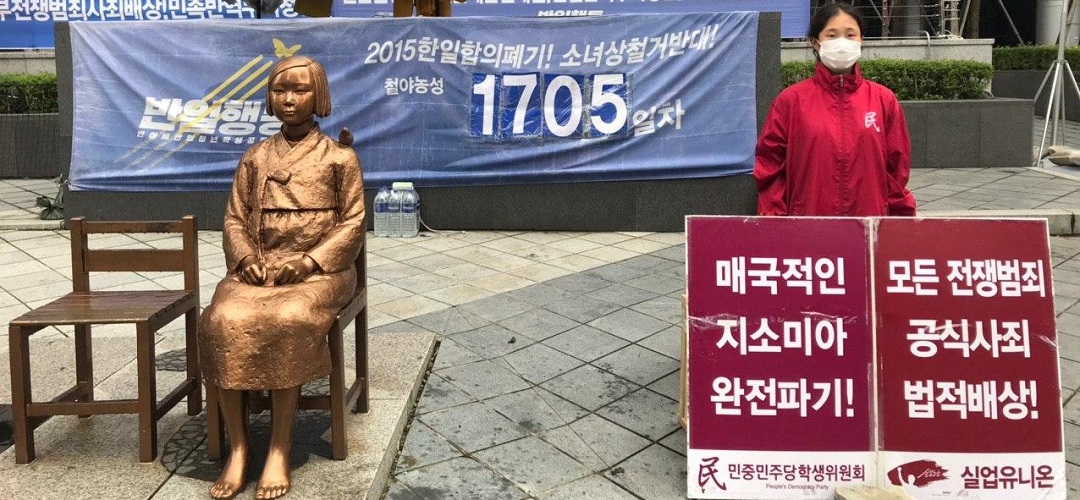 29일 반일행동(반아베반일청년학생공동행동)은 <매국적한일합의폐기! 전쟁범죄사죄배상!>촉구 소녀상농성을 1705일째 진행했다.