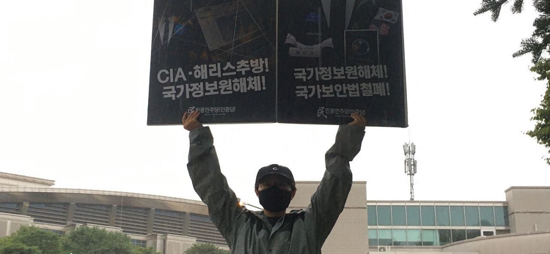 이날 민중민주당은 정보원앞 <프락치공작 책임자처벌!>·<정당탄압 국가정보원해체!>·<파쇼악법 국가보안법철폐!> 일인시위를 91일째 전개했다.