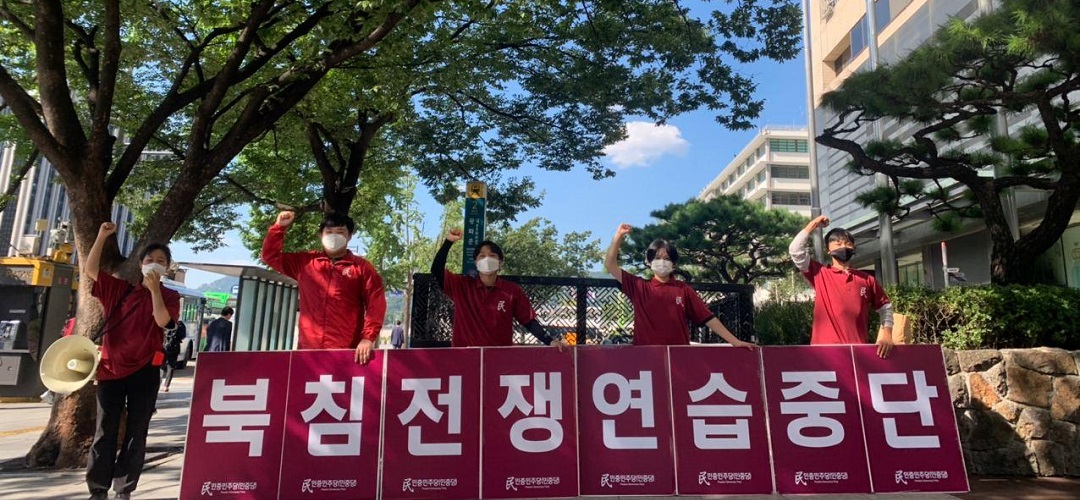 주남미군사령부가 있는 평택험프리스기지앞에서는 <북미협상결렬 트럼프규탄!>·<전쟁연습중단! 미군철거!>구호피시를 들고 미군철거시위를 613일째 진행했다.