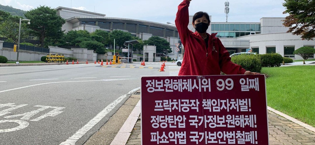 당원들은 청와대앞 <친미친일반역언론 조선일보폐간!>·<프락치공작소굴 국가정보원해체!>·<반민주파쇼악법 국가보안법철폐!>투쟁을 81일째 진행했다.