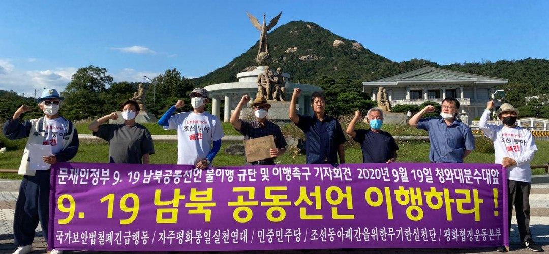 기자회견·집회연대투쟁실천民 민중민주당 〈9.19공동선언불이행규탄〉 기자회견연대 2020년 9월 19일 FacebookTwitter 19일 민중민주당(민중당)은 청와대앞에서 진행된 <9.19남북공동선언불이행규탄>기자회견에 연대했다.