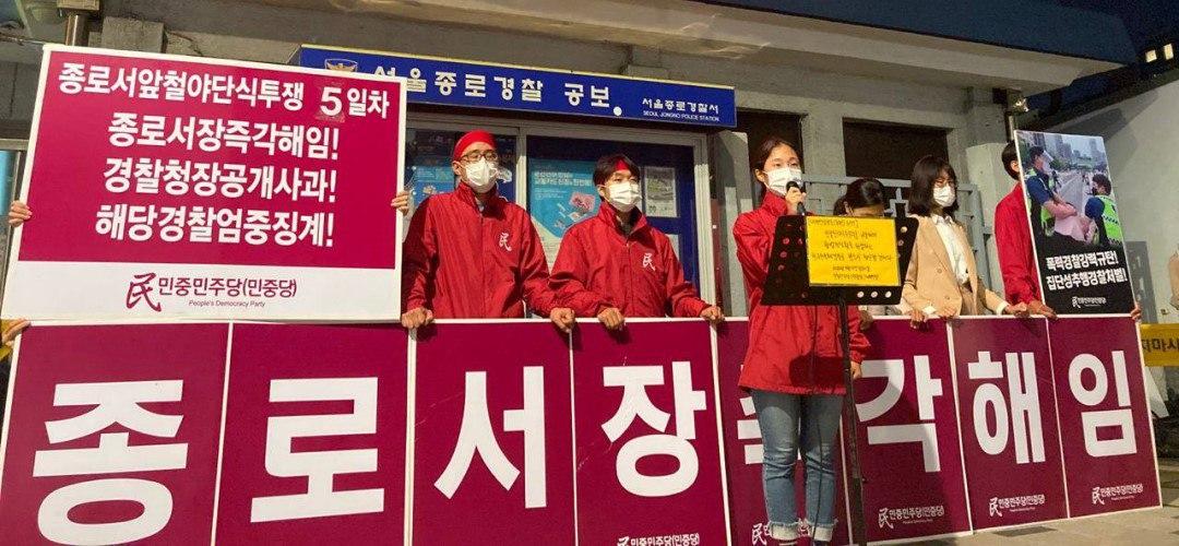 민중민주당, 종로서앞 〈친일친미극우무리를 비호하며 합법정당활동 탄압하는 친극우악폐경찰을 반드시 청산할 것이다〉 대변인실보도