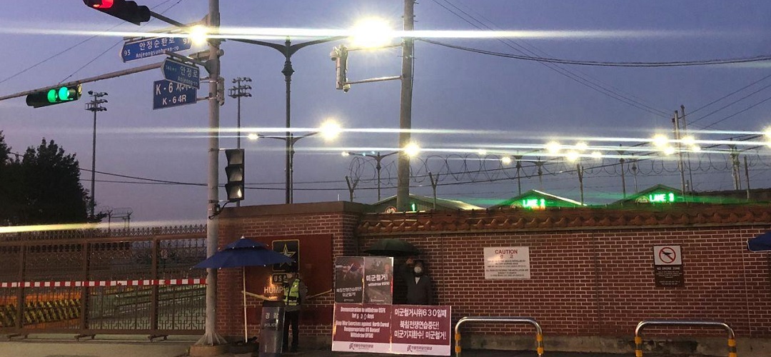 주남미군사령부가 있는 평택험프리스기지앞에서는 <북미협상결렬 트럼프규탄!>·<전쟁연습중단! 미군철거!>구호피시를 들고 미군철거시위를 630일째 진행했다.