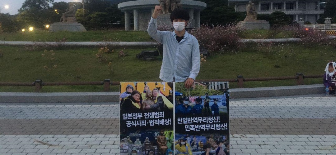29일 반일행동(반아베반일청년학생공동행동)은 <매국적한일합의폐기! 전쟁범죄사죄배상!>촉구 소녀상농성을 1736일째 진행했다.