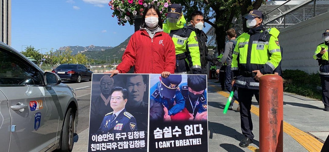 민중민주당(민중당)은 5일 미대사관앞에서 <내정간섭망언 해리스추방! 미군유지비증액! 트럼프규탄! 미군철거!>촉구 평화시위를 1539일째 진행했다.