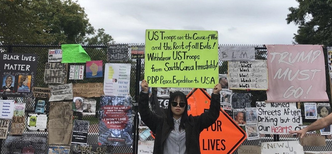 민중민주당(민중당) 미국평화원정단은 10일(현지시간) 워싱턴D.C백악관앞에서 <전쟁화근 만악근원 미군즉각철거!>, <미군유지비증액 트럼프정부규탄!>, <북침전쟁연습 트럼프정부규탄!> 등을 촉구하는 평화시위를 총1252일째 진행했다.