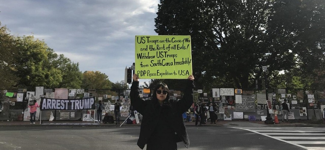 민중민주당(민중당) 미국평화원정단은 16일(현지시간) 워싱턴D.C백악관앞에서 <전쟁화근 만악근원 미군즉각철거!>, <미군유지비증액 트럼프정부규탄!>, <북침전쟁연습 트럼프정부규탄!> 등을 촉구하는 평화시위를 총1258일째 진행했다.