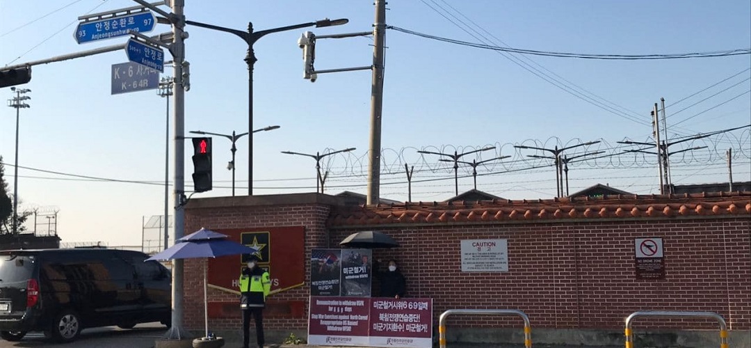 주남미군사령부가 있는 평택험프리스기지앞에서는 <북미협상결렬 트럼프규탄!>·<전쟁연습중단! 미군철거!>구호피시를 들고 미군철거시위를 669일째 진행했다.