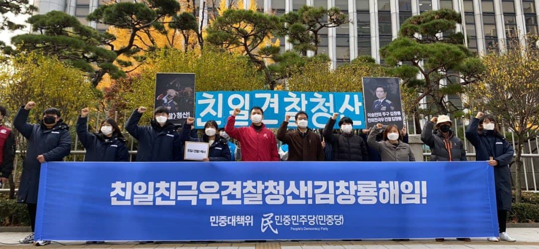 11월 13일 민중민주당(민중당)과 민대위(국가보안법철폐국가정보원해체조선일보폐간을위한민중대책위원회)는 <견찰>청앞에서 <친일친극우견찰청산!김창룡해임!> 기자회견을 열었다.