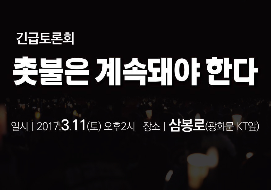 이에 환수복지당은 <촛불은 계속돼야 한다>는 주제로 긴급토론회를 갖고자 합니다. 많은 참여 부탁드립니다.