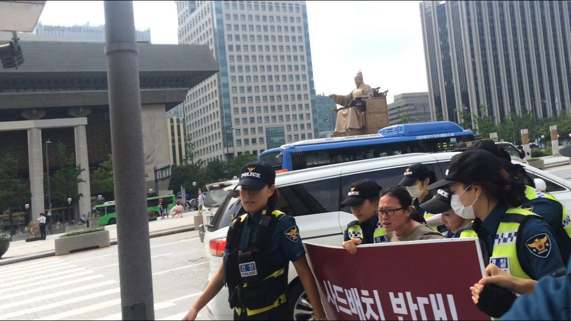 사드배치 반대 미군기지 환수 미대사관앞 시위 1일째