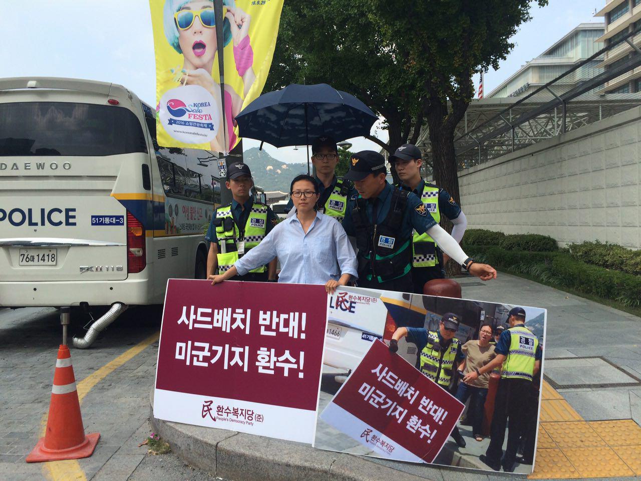 사드배치 반대 미군기지 환수 미대사관앞 시위 19일째
