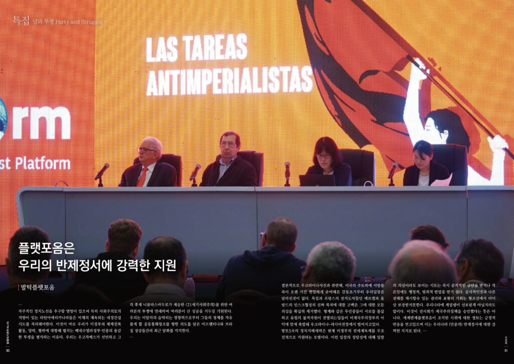 자주적인 정치노선을 추구할 열망이 있으며 특히 사회주의로의 지향이 있는 라틴아메리카나라들은 미제의 계속되는 내정간섭시도를 처리해야한다. 이것이 바로 우리가 미정부의 체제전복활동, 압박, 협박에 대항해 펼치는 베네수엘라정부·민중의 용감한 투쟁을 평가하는 이유다. 우리는 우고차베스가 선언하고 그의 후계 니콜라스마두로가 계승한 <21세기사회주의>를 위한 여러분의 투쟁에 연대하며 여러분이 큰 성공을 거두길 기원한다. 우리는 미달러의 숨막히는 영향력으로부터 그들의 경제를 자유롭게 할 공동통화창조를 향한 의도를 담은 아르헨티나와 브라질 정상들간의 최근 담화를 지지한다.