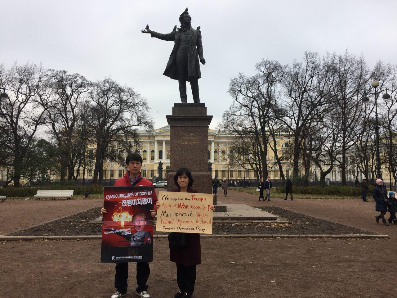 민중민주당(환수복지당) 러시아반트럼프반미원정단은 11월6일 상트페테르부르크에 있는 러시아미술관(Русский музей)앞 공원에서 반트럼프반미시위를 벌였습니다.
