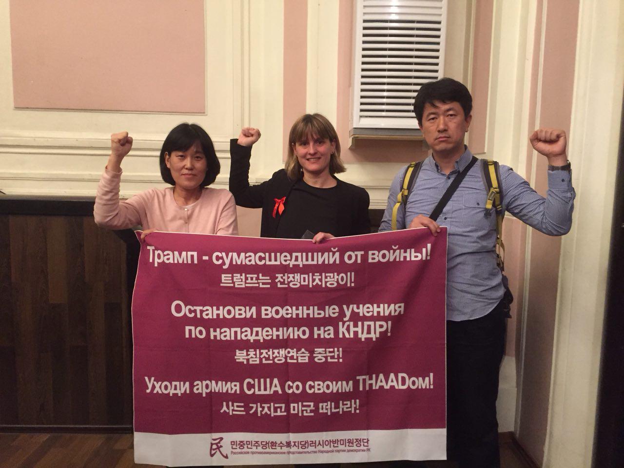 원정단의 시위를 관심있게 지켜보던 러시아인은 즉석에서 러시아어로 된 선전물을 제작해주기도 했고, 공원을 오가는 많은 시민들과 여행객들은 시위장면을 사진찍거나 원정단과 함께 기념사진을 찍기도 했습니다.