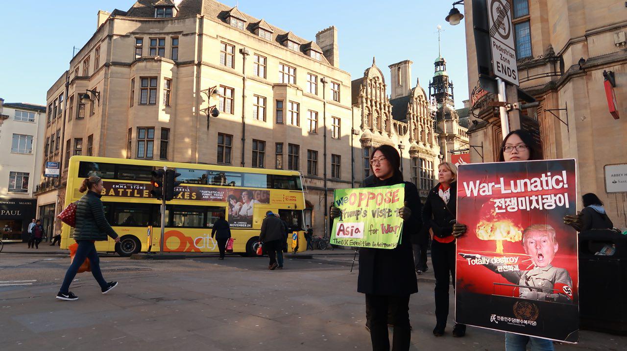 민중민주당(환수복지당) 영국반트럼프반미원정단은 11월8일 런던 트라팔가광장과 옥스퍼드에서 원정4일차 시위를 진행했습니다.