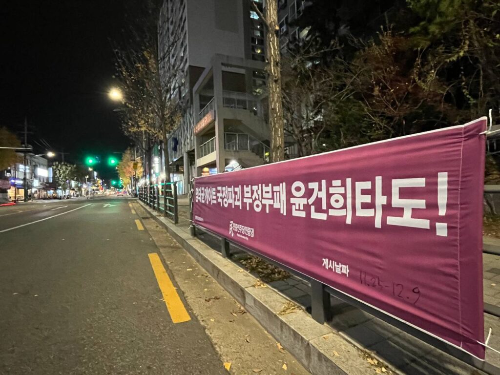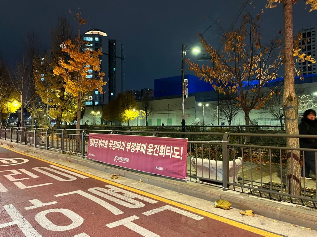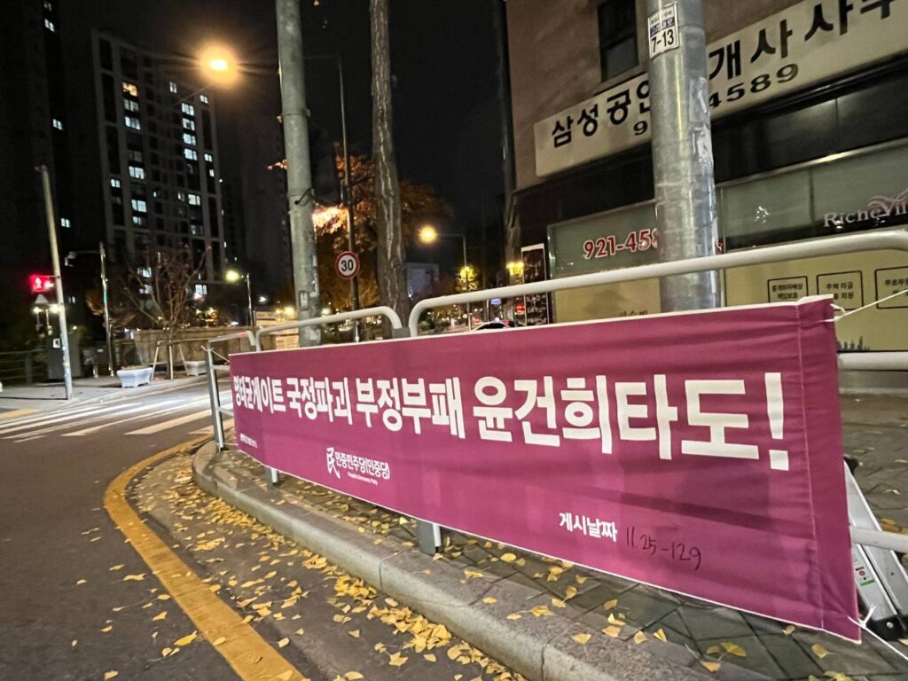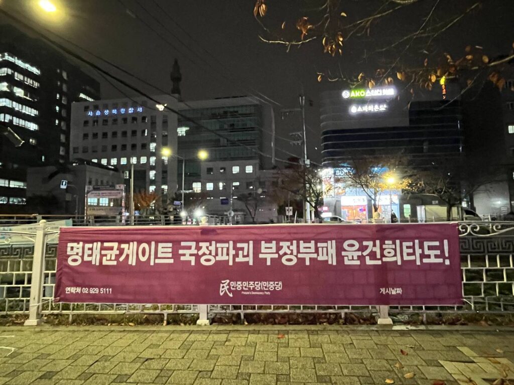 Sign in Welcome! Log into your account your username your password Forgot your password? Get help 개인정보처리방침 Password recovery Recover your password your email A password will be e-mailed to you. Home실천정당연설회 정당연설회 민중민주당, 25일 성북구 〈명태균게이트 국정파괴 부정부패 윤건희타도!〉가로막 게시 2024년 11월 25일 24일 민중민주당(민중당)은 서울 성북구 성북동·동선동·정릉동·길음동·돈암1동·삼선동·안암동·종암동·월곡1동·장위동·월곡2동일대에 <명태균게이트 국정파괴 부정부패 윤건희타도!> 구호의 가로막을 게시했다. Previous article민중민주당인천시당, 24일 〈명태균게이트 국정파괴 부정부패 윤건희타도!〉가로막 게시 Next article민중민주당, 25일 경찰청앞 〈명태균게이트 국정파괴 부정부패 윤건희타도!〉가로막 게시 - Advertisement - 최신글 민중민주당 지태환열사11주기추모제 참석 2025년 12월 7일 12월6일 오후2시 미국대사관앞 날강도미국배격! 대베네수엘라침략전쟁중단! 점령군미군철거! 정당연설 2025년 12월 4일 〈폴란드공동주의정당탄압중단!〉 민중민주당 폴란드대사관앞정당연설회 2025년 12월 3일 [대변인실보도(논평) 644] 12월항쟁은 끝나지 않았다 2025년 12월 3일 〈날강도미국배격! 대베네수엘라침략전쟁중단! 점령군미군철거!〉 미대사관앞 반제반파쇼정당연설회 2025년 11월 30일