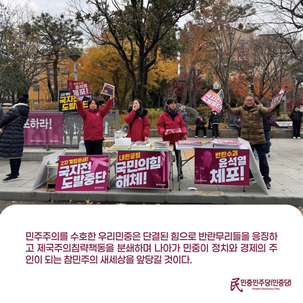 Sign in Welcome! Log into your account your username your password Forgot your password? Get help 개인정보처리방침 Password recovery Recover your password your email A password will be e-mailed to you. Home자료카드뉴스 카드뉴스 [카드뉴스] 윤석열 체포! 파면! 김건희 구속! 국민의힘 해체! 2024년 12월 17일 Previous article민중민주당 미대사관앞평화시위3071일째 〈광화문미대사관앞철야〉2638일째 미대사관앞정당연설회2114일째Next article민중민주당, 16일 평화시장앞 등 〈반란수괴 윤석열 당장체포!〉가로막게시 - Advertisement - 최신글 12월6일 오후2시 미국대사관앞 날강도미국배격! 대베네수엘라침략전쟁중단! 점령군미군철거! 정당연설 2025년 12월 4일 〈폴란드공동주의정당탄압중단!〉 민중민주당 폴란드대사관앞정당연설회 2025년 12월 3일 [대변인실보도(논평) 644] 12월항쟁은 끝나지 않았다 2025년 12월 3일 〈날강도미국배격! 대베네수엘라침략전쟁중단! 점령군미군철거!〉 미대사관앞 반제반파쇼정당연설회 2025년 11월 30일 2025.11 항쟁의기관차 〈길〉 PDF파일 공개 2025년 11월 29일