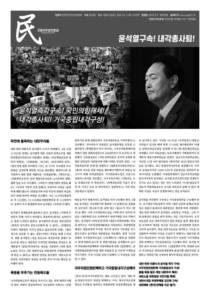 – 민중민주당논평 <윤석열을 즉각 구속하고 거국중립내각 구성하라!> (21세기민족일보, 2025.4.4)