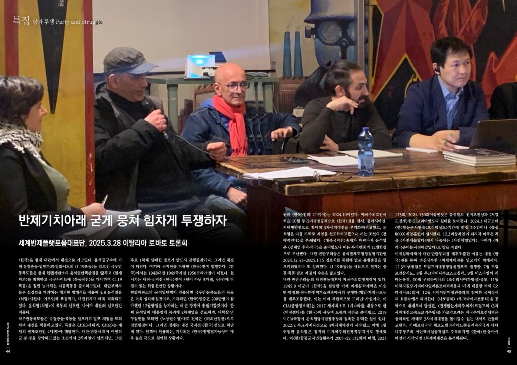세계반제플랫포옴대표단, 2025.3.28 이탈리아 로바토 토론회