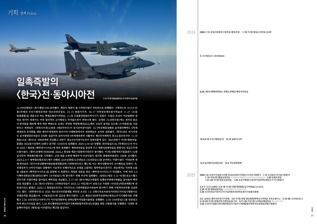 12.3비상계엄은 <전시계엄>으로 준비됐다. 계엄의 명분이 될 국지전도발이 지속적으로 감행됐다. 구체적으로 10.3·9·10 총3차례의 무인기평양공격과 대조선전단살포, 10.15 중화기사격, 10.17 다연장로케트발사연습과 11.27 <도발원점궤멸>을 내용으로 하는 백령도해상사격연습, 11.28 오물풍선원점타격지시가 있었다. 도발은 조선이 비난담화와 성명을 연이어 내면서도 어떤 물리적인 군사행동도 하지않으면서 파탄나게 됐다. 공개된 <노상원수첩>에는 정치인·종교인·판사들을 체포해 배에 태워 백령도로 보내는 과정중 북방한계선(NLL)에서 조선의 공격을 유도해 <수거대상>을 사살한다고 적혀있다. <대북국지전>도발과 <대남자작극>이 동시준비중이었다. 12.3비상계엄실패와 윤석열탄핵에도 3차세계대전의 본격화를 위한 제국주의세력의 동아시아·서태평양에서의 개전책동은 오히려 심화됐다. <한국>전은 죽기직전인 윤석열내란무리들의 유일한 살길이자 동아시아전·3차세계대전에 사활적인 제국주의세력의 최고노림수라서다. <1.19폭동>으로 <한국>은 내전단계에 진입했고 상반기 대조선국지전가능성이 일촉즉발에 있다. 2025전반기 미<한>합동연습·훈련은 2024동기간대비 10회나 증가한 113건으로 집계됐다. 2025.3.10~20 진행된 <프리덤실드>는 <작계5015>가 아니라 2024.7 합의된 <핵작전시나리오>에 따라 전개됐다. 핵작전연습을 중심에 두고 재래식전쟁연습을 통합시킨 대규모무력도발이었다. <한국>군병력1만9000명, 2024.2 창설된 해군기동함대사령부가 참가했다. 미<한>연합야외기동훈련이 51회 실시되며 역대최다횟수를 기록했다. 군대·경찰·소방대·행정부서·민간인들이 참가한 통합방위훈련은 238회 실시됐다. 2025.2.3~7 평택캠프험프리스에서 진행된 <오프닝갬빗>도상연습은 <프리덤실드>를 준비하는 차원이었다. 이연습에 대해 한언론은 <위기이전상황에서대응할태세를갖추>기위한것이라고 했는데, 이는 평시상황에서의 군사행동을 뜻한다. 즉, 전쟁징후가 나타나지않은 상황에서 기습적인 선제타격으로 전쟁을 도발하는 침략연습인것이다. 연습에서는 이전에 도출된 2종류의 <핵작전시나리오>를 종합해 더 복잡하고 세밀한 내용을 담은 <핵작전시나리오>가 작성됐고, 이에 따라 3.2 미핵추진항공모함<칼빈슨>함이 <프리덤실드>에 참가하기 위해 부산에 입항했다. <칼빈슨>함은 3.14 미<한>공군스텔스전투기와 지원무력을 끌어들인 핵작전을 연습했고, 3.17~20 <한국>해군구축함과 일해상자위대구축함을 끌어들여 핵작전을 연습했다. 3.20 <한국>국방부는 3자해상연습이 2023.12 미일<한>이 공동으로 수립한 <다년간3자훈련계획>에 의한것이라고 밝혔다. 2024.11 합동참모본부는 미국주도의 다영역합동군사연습에 참가하기 위해 다영역작전부를 신설하기도 했다. <전략적인내>로 2024 대조선국지전흉계를 파탄낸 조선은 1.6 신형극초음속중장거리탄도미사일시험발사로 전쟁준비를 완료했으며, <거꿀초읽기>에 있음을 확인시켰다. 1.25 해상(수중)대지상전략순항유도무기시험발사를 진행했고 2.26 조선인민군서부지구가 미사일연합부대 전략순항미사일발사훈련을 진행했다. 3.10 <프리덤실드>를 엄중경고하며 탄도미사일을 발사, 3.20 최신형반항공미사일무기체계종합적전투성능검열을 위한 시험발사를 진행했다. 다양한 전술핵미사일로 <평정>을 이루겠다는 확고한 결심이다.