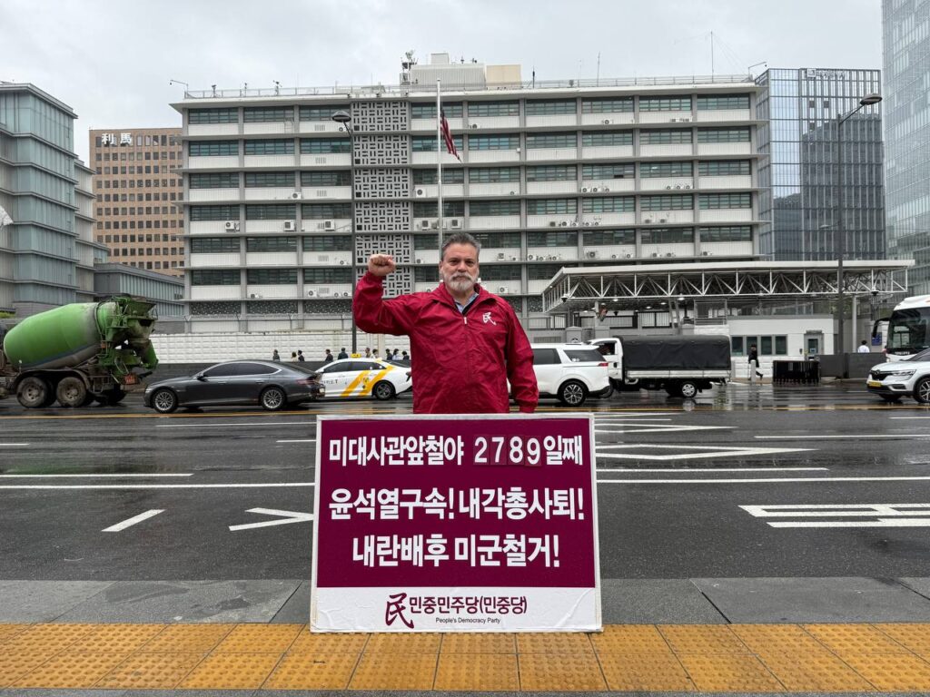 디미트리오스 파텔리스는 16일 서울 광화문 미대사관앞에서 2789일째 진행중인 민중민주당(민중당)평화시위에 지지·연대했다.