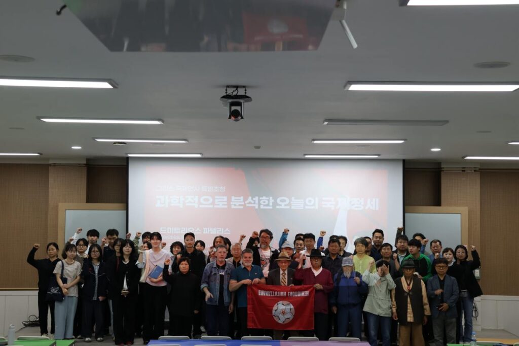 18일 세계반제플랫포옴 성원이자 그리스 혁명적단합(Revolutionary Unification)대표 디미트리오스 파텔리스(Dimitrios Patelis)의 강연 <과학적으로 분석한 오늘의 국제정세>가 광주 조선대에서 진행됐다.