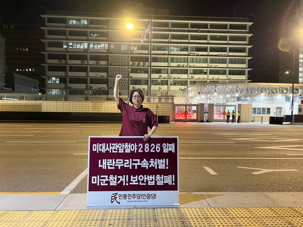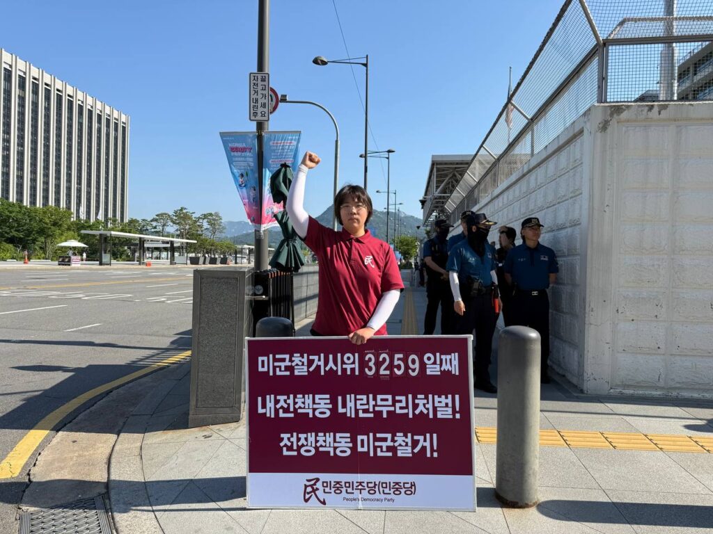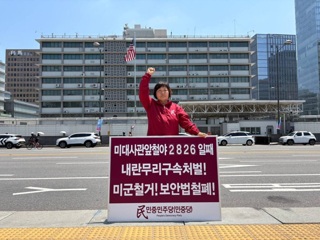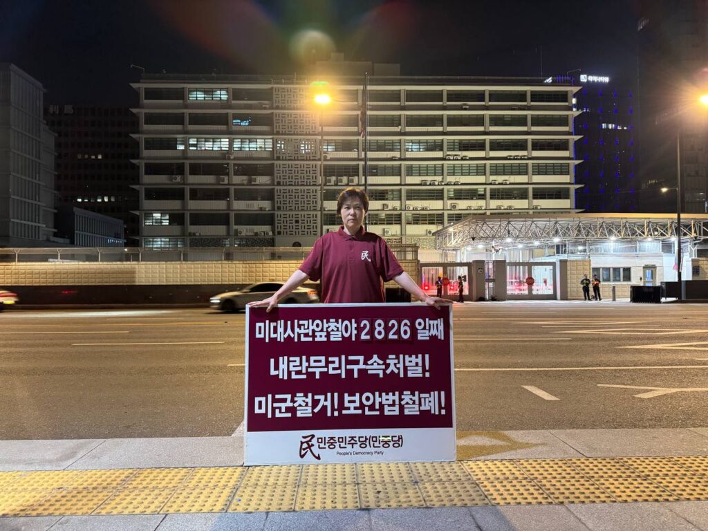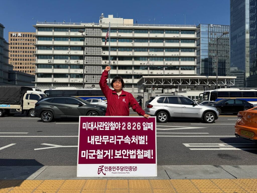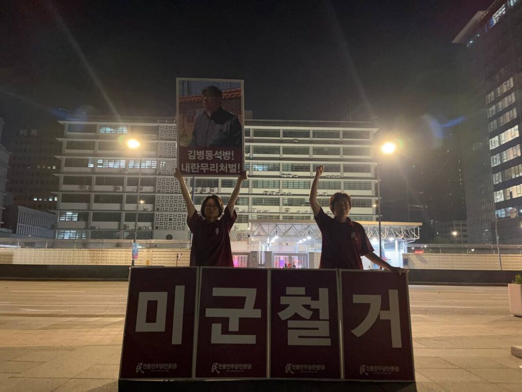 Sign in Welcome! Log into your account your username your password Forgot your password? Get help 개인정보처리방침 Password recovery Recover your password your email A password will be e-mailed to you. Home실천평화시위 평화시위 민중민주당 미대사관앞평화시위3259일째 〈광화문미대사관앞철야〉2826일째 미대사관앞정당연설회2302일 2025년 6월 23일 22일 민중민주당(민중당)은 미대사관앞에서 <내전책동 내란무리처벌! 전쟁책동 미군철거!> 구호를 들고 평화시위를 3259일째 전개했다. 미대사관정문 맞은편에서는 우리말과 영어로 된 구호 <내란무리구속처벌! 미군철거! 보안법철폐!>를 들고 <광화문미대사관앞철야시위>를 진행했다. <김병동석방! 윤석열구속!> 구호도 함께 들었다. 시위는 <제재반대·평화협상100일행동>과 반전평화·악폐청산을 위한 <무기한비상행동>을 합쳐 2826일째 이어졌다. <미군철거!> 미대사관앞정당연설회는 2302일째 진행됐다. Previous article민중민주당 미대사관앞평화시위3258일째 〈광화문미대사관앞철야〉2825일째 미대사관앞정당연설회2301일Next article〈세계대전도발제국주의타도! 세계반제투쟁승리!〉 6월세계반제동시투쟁 〈한국〉 - Advertisement - 최신글 12월6일 오후2시 미국대사관앞 날강도미국배격! 대베네수엘라침략전쟁중단! 점령군미군철거! 정당연설 2025년 12월 4일 〈폴란드공동주의정당탄압중단!〉 민중민주당 폴란드대사관앞정당연설회 2025년 12월 3일 [대변인실보도(논평) 644] 12월항쟁은 끝나지 않았다 2025년 12월 3일 〈날강도미국배격! 대베네수엘라침략전쟁중단! 점령군미군철거!〉 미대사관앞 반제반파쇼정당연설회 2025년 11월 30일 2025.11 항쟁의기관차 〈길〉 PDF파일 공개 2025년 11월 29일