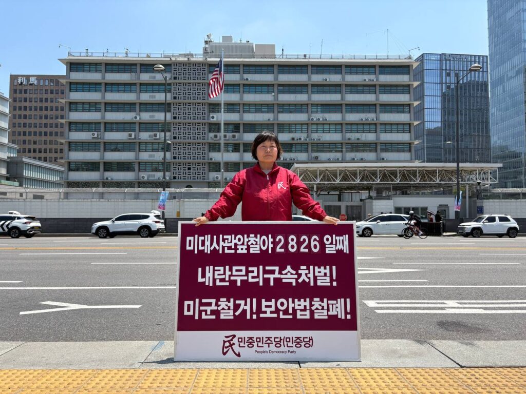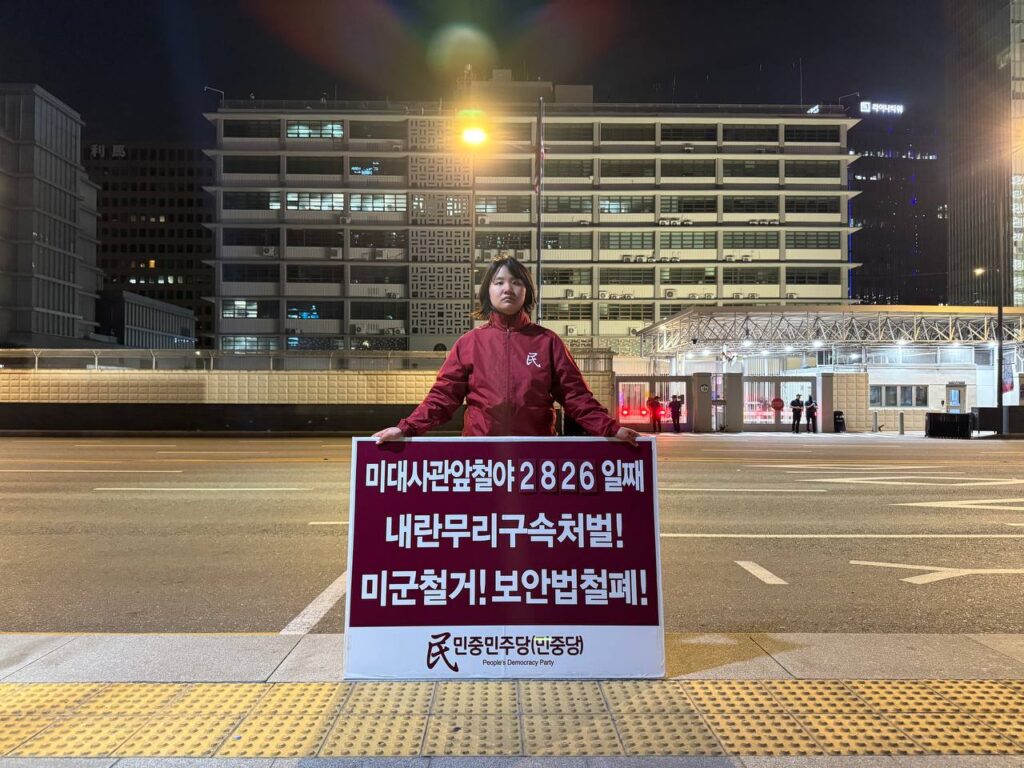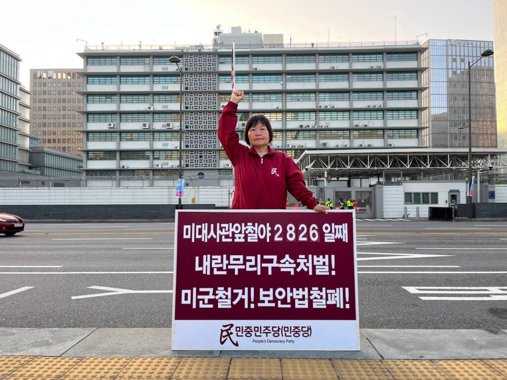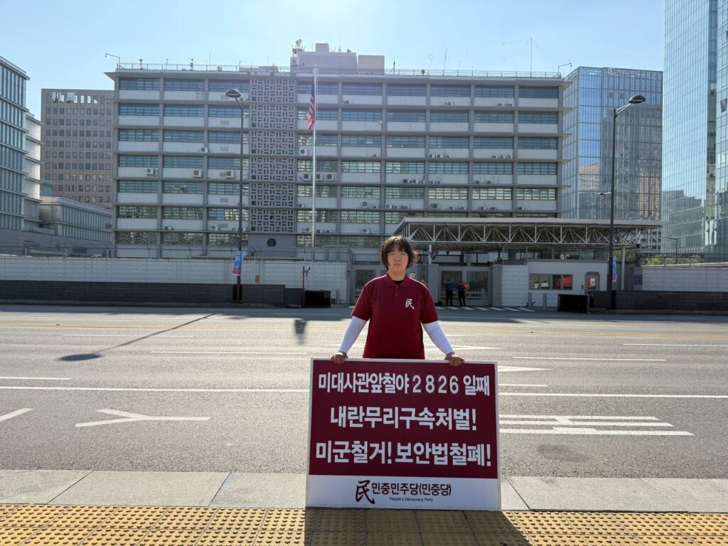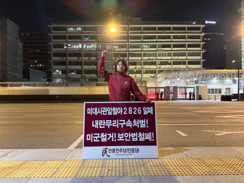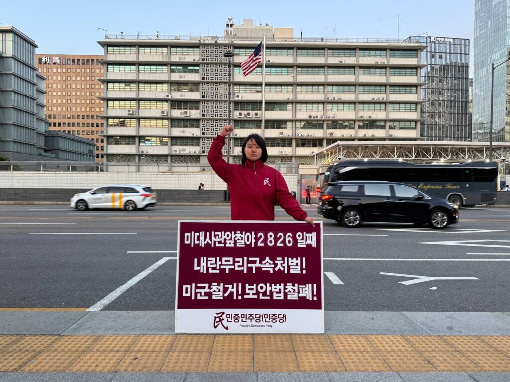 Sign in Welcome! Log into your account your username your password Forgot your password? Get help 개인정보처리방침 Password recovery Recover your password your email A password will be e-mailed to you. Home실천평화시위 평화시위 민중민주당 미대사관앞평화시위3259일째 〈광화문미대사관앞철야〉2826일째 미대사관앞정당연설회2302일 2025년 6월 23일 22일 민중민주당(민중당)은 미대사관앞에서 <내전책동 내란무리처벌! 전쟁책동 미군철거!> 구호를 들고 평화시위를 3259일째 전개했다. 미대사관정문 맞은편에서는 우리말과 영어로 된 구호 <내란무리구속처벌! 미군철거! 보안법철폐!>를 들고 <광화문미대사관앞철야시위>를 진행했다. <김병동석방! 윤석열구속!> 구호도 함께 들었다. 시위는 <제재반대·평화협상100일행동>과 반전평화·악폐청산을 위한 <무기한비상행동>을 합쳐 2826일째 이어졌다. <미군철거!> 미대사관앞정당연설회는 2302일째 진행됐다. Previous article민중민주당 미대사관앞평화시위3258일째 〈광화문미대사관앞철야〉2825일째 미대사관앞정당연설회2301일Next article〈세계대전도발제국주의타도! 세계반제투쟁승리!〉 6월세계반제동시투쟁 〈한국〉 - Advertisement - 최신글 12월6일 오후2시 미국대사관앞 날강도미국배격! 대베네수엘라침략전쟁중단! 점령군미군철거! 정당연설 2025년 12월 4일 〈폴란드공동주의정당탄압중단!〉 민중민주당 폴란드대사관앞정당연설회 2025년 12월 3일 [대변인실보도(논평) 644] 12월항쟁은 끝나지 않았다 2025년 12월 3일 〈날강도미국배격! 대베네수엘라침략전쟁중단! 점령군미군철거!〉 미대사관앞 반제반파쇼정당연설회 2025년 11월 30일 2025.11 항쟁의기관차 〈길〉 PDF파일 공개 2025년 11월 29일