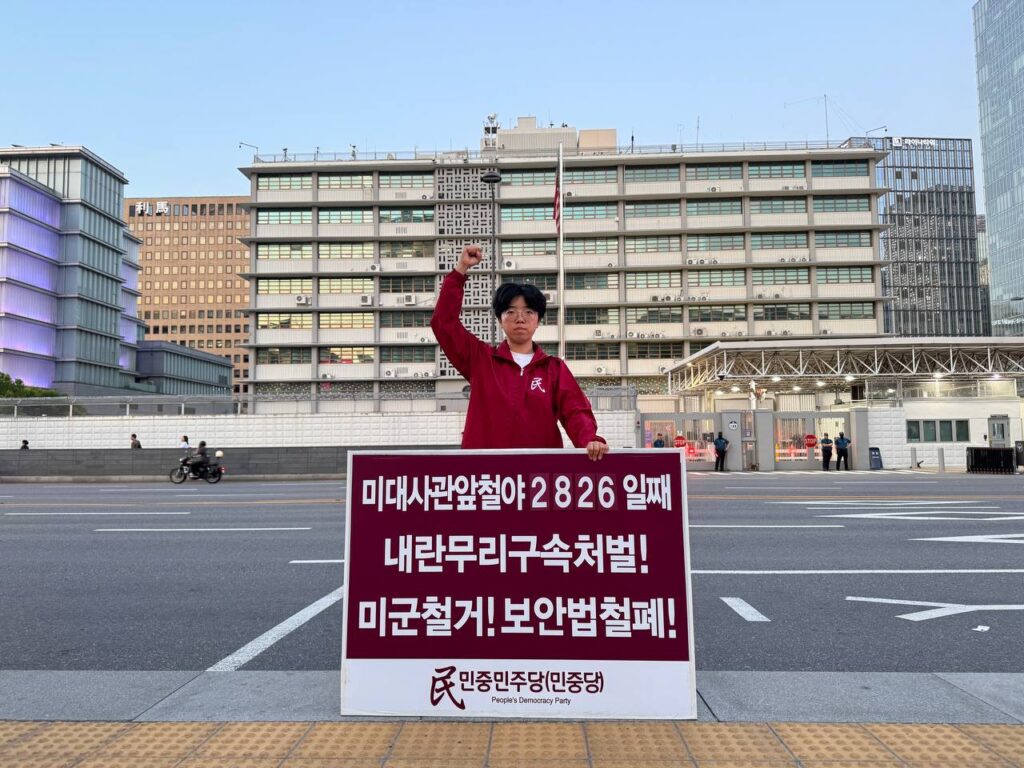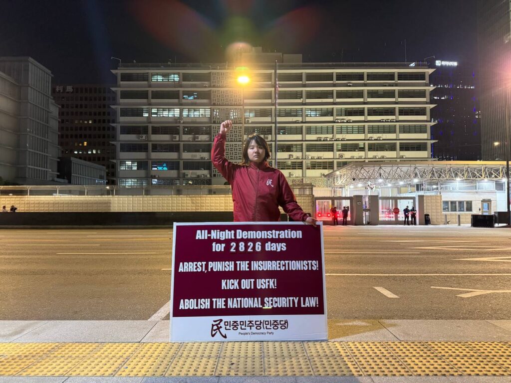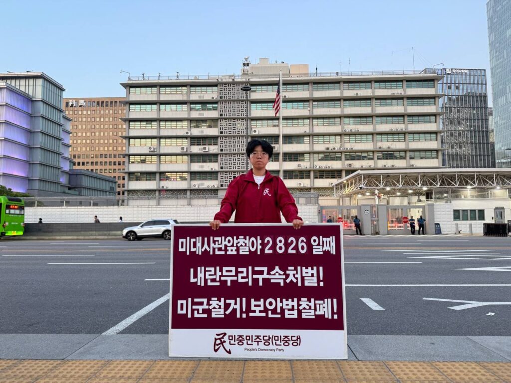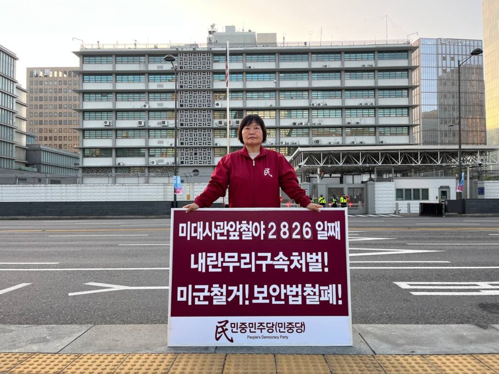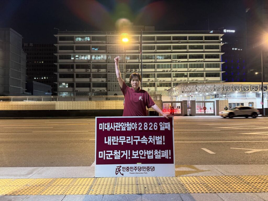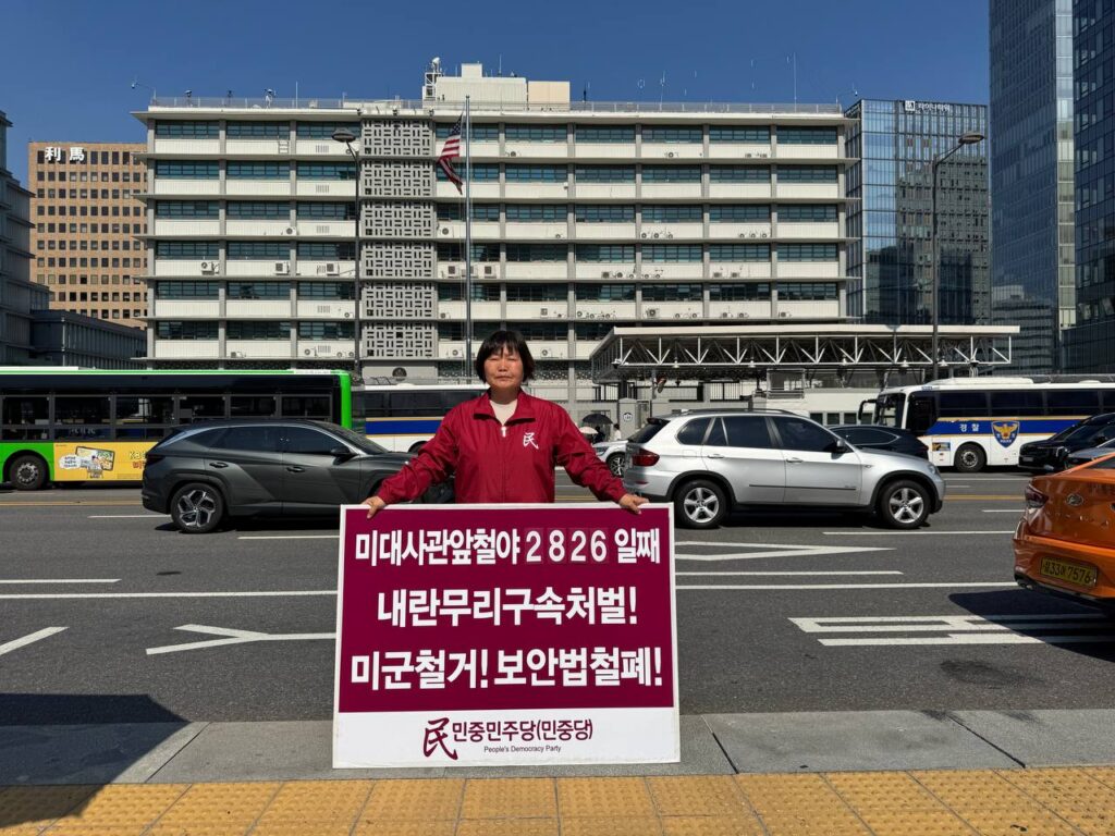 Sign in Welcome! Log into your account your username your password Forgot your password? Get help 개인정보처리방침 Password recovery Recover your password your email A password will be e-mailed to you. Home실천평화시위 평화시위 민중민주당 미대사관앞평화시위3259일째 〈광화문미대사관앞철야〉2826일째 미대사관앞정당연설회2302일 2025년 6월 23일 22일 민중민주당(민중당)은 미대사관앞에서 <내전책동 내란무리처벌! 전쟁책동 미군철거!> 구호를 들고 평화시위를 3259일째 전개했다. 미대사관정문 맞은편에서는 우리말과 영어로 된 구호 <내란무리구속처벌! 미군철거! 보안법철폐!>를 들고 <광화문미대사관앞철야시위>를 진행했다. <김병동석방! 윤석열구속!> 구호도 함께 들었다. 시위는 <제재반대·평화협상100일행동>과 반전평화·악폐청산을 위한 <무기한비상행동>을 합쳐 2826일째 이어졌다. <미군철거!> 미대사관앞정당연설회는 2302일째 진행됐다. Previous article민중민주당 미대사관앞평화시위3258일째 〈광화문미대사관앞철야〉2825일째 미대사관앞정당연설회2301일Next article〈세계대전도발제국주의타도! 세계반제투쟁승리!〉 6월세계반제동시투쟁 〈한국〉 - Advertisement - 최신글 12월6일 오후2시 미국대사관앞 날강도미국배격! 대베네수엘라침략전쟁중단! 점령군미군철거! 정당연설 2025년 12월 4일 〈폴란드공동주의정당탄압중단!〉 민중민주당 폴란드대사관앞정당연설회 2025년 12월 3일 [대변인실보도(논평) 644] 12월항쟁은 끝나지 않았다 2025년 12월 3일 〈날강도미국배격! 대베네수엘라침략전쟁중단! 점령군미군철거!〉 미대사관앞 반제반파쇼정당연설회 2025년 11월 30일 2025.11 항쟁의기관차 〈길〉 PDF파일 공개 2025년 11월 29일