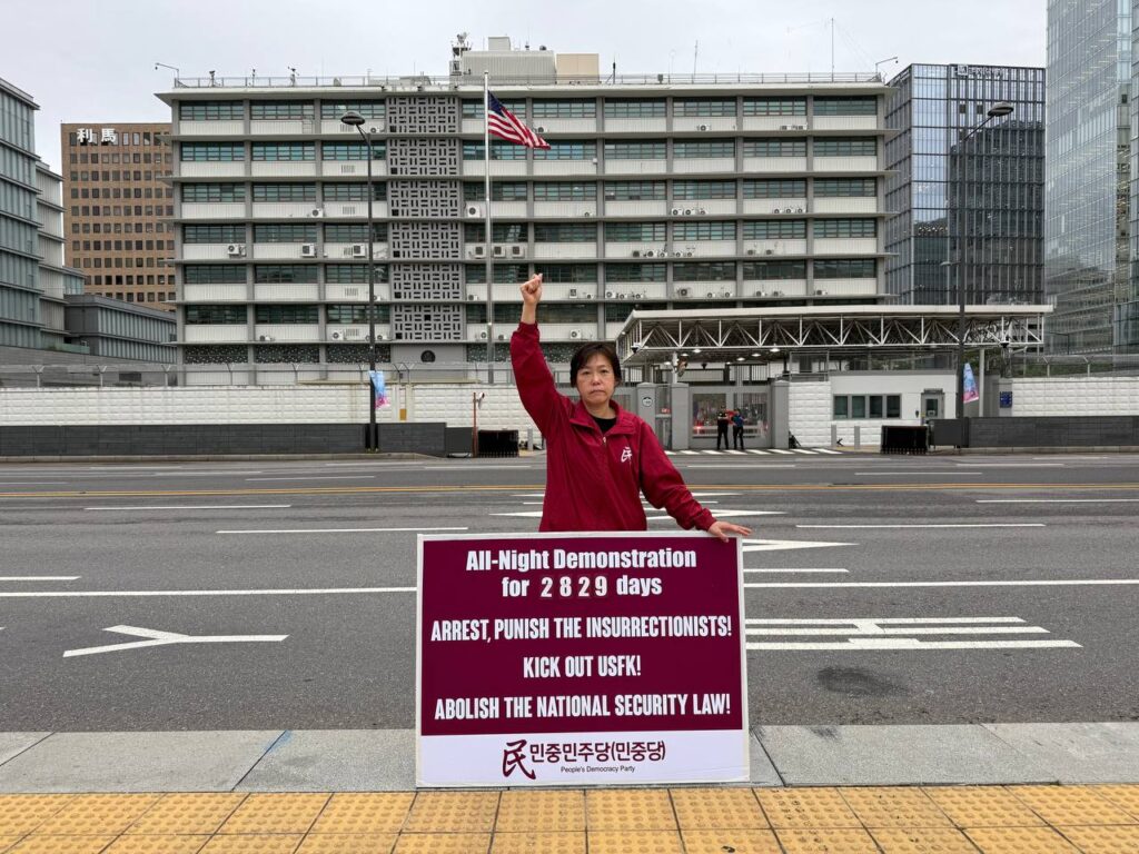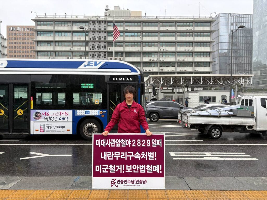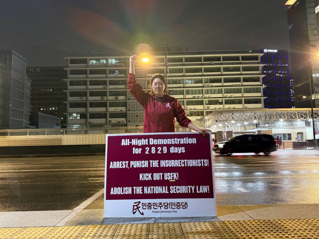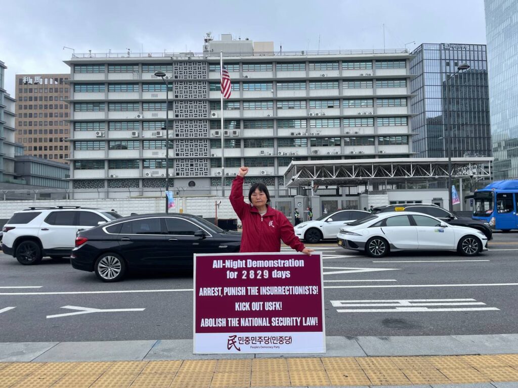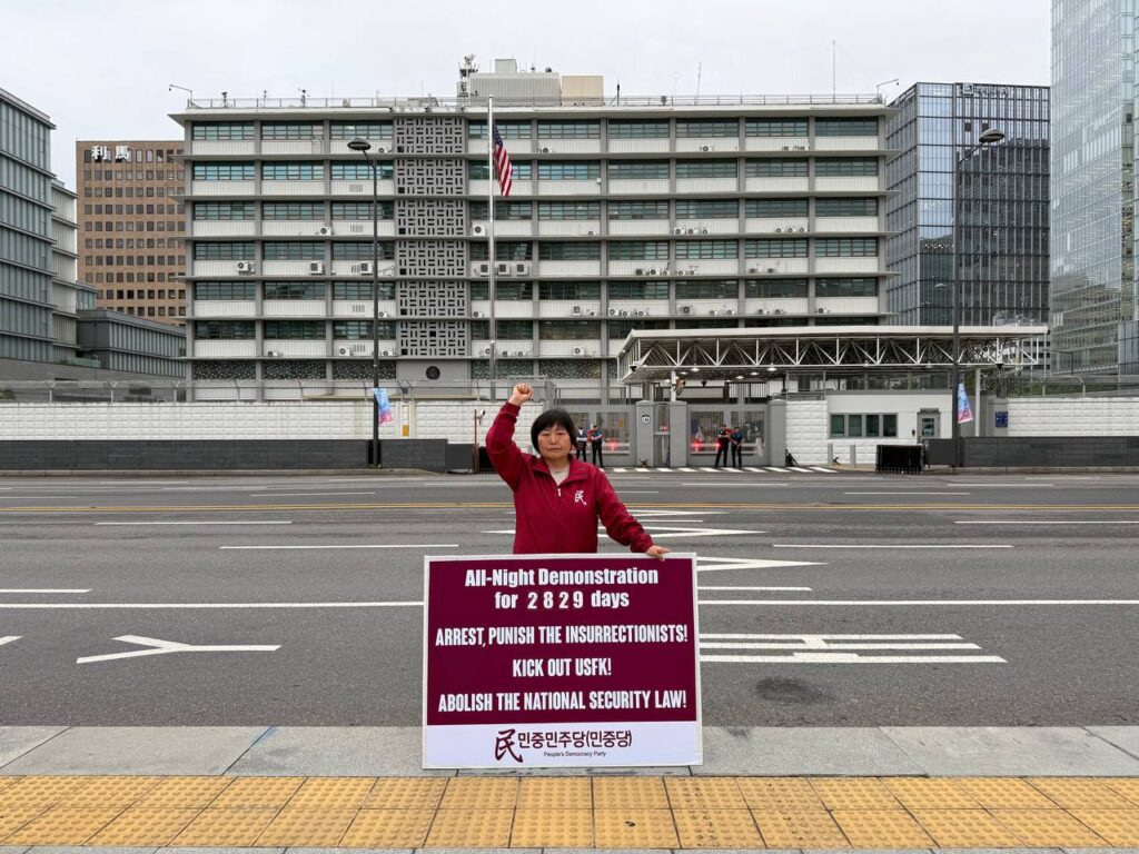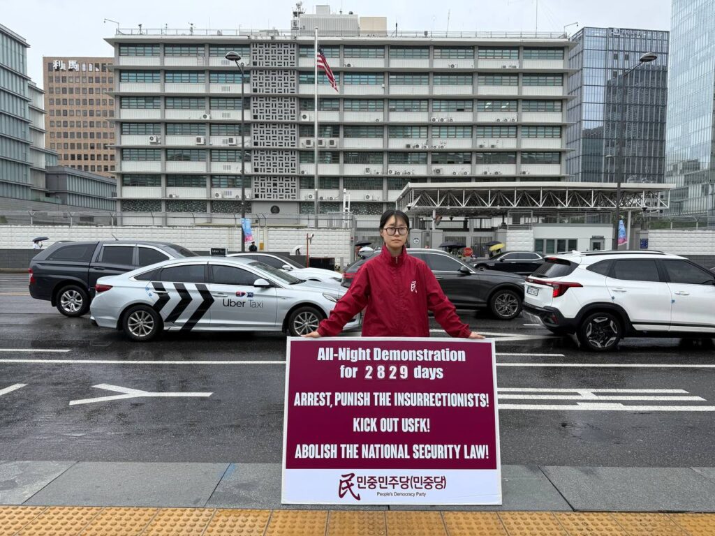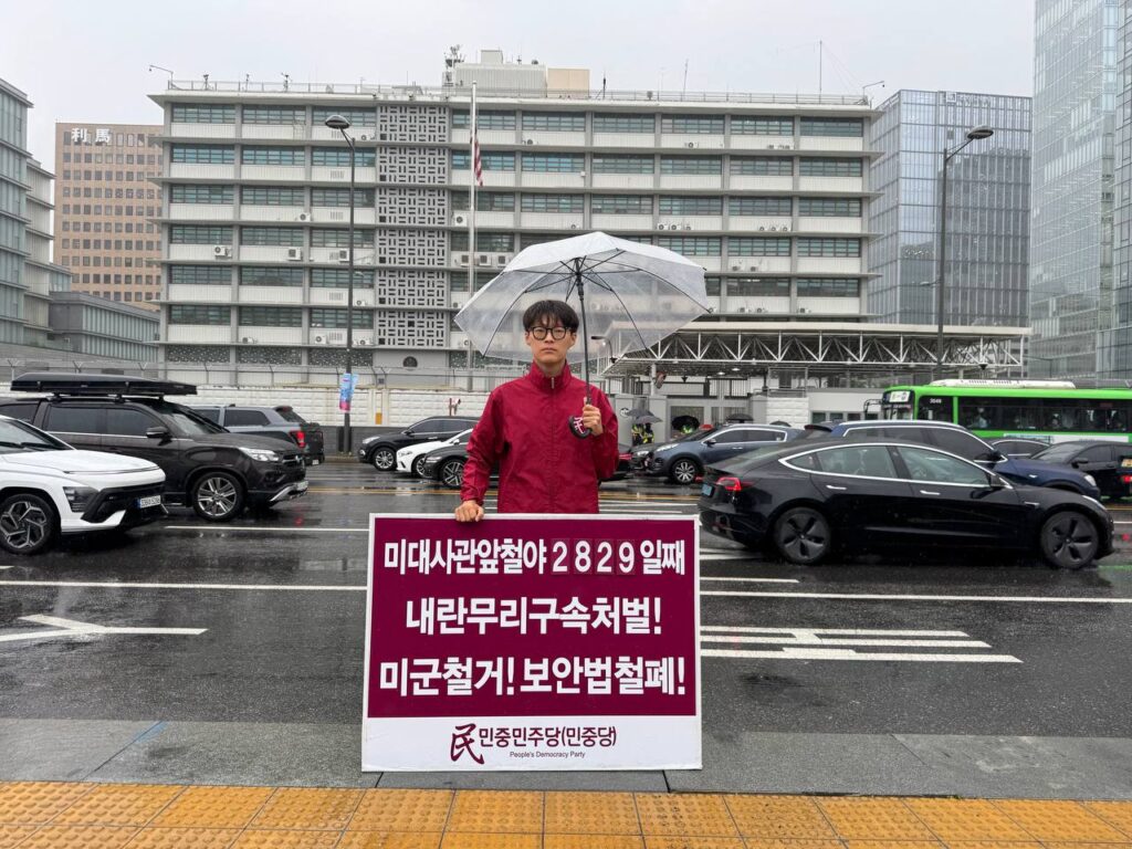 25일 민중민주당(민중당)은 미대사관앞에서 <내전책동 내란무리처벌! 전쟁책동 미군철거!> 구호를 들고 평화시위를 3262일째 전개했다.