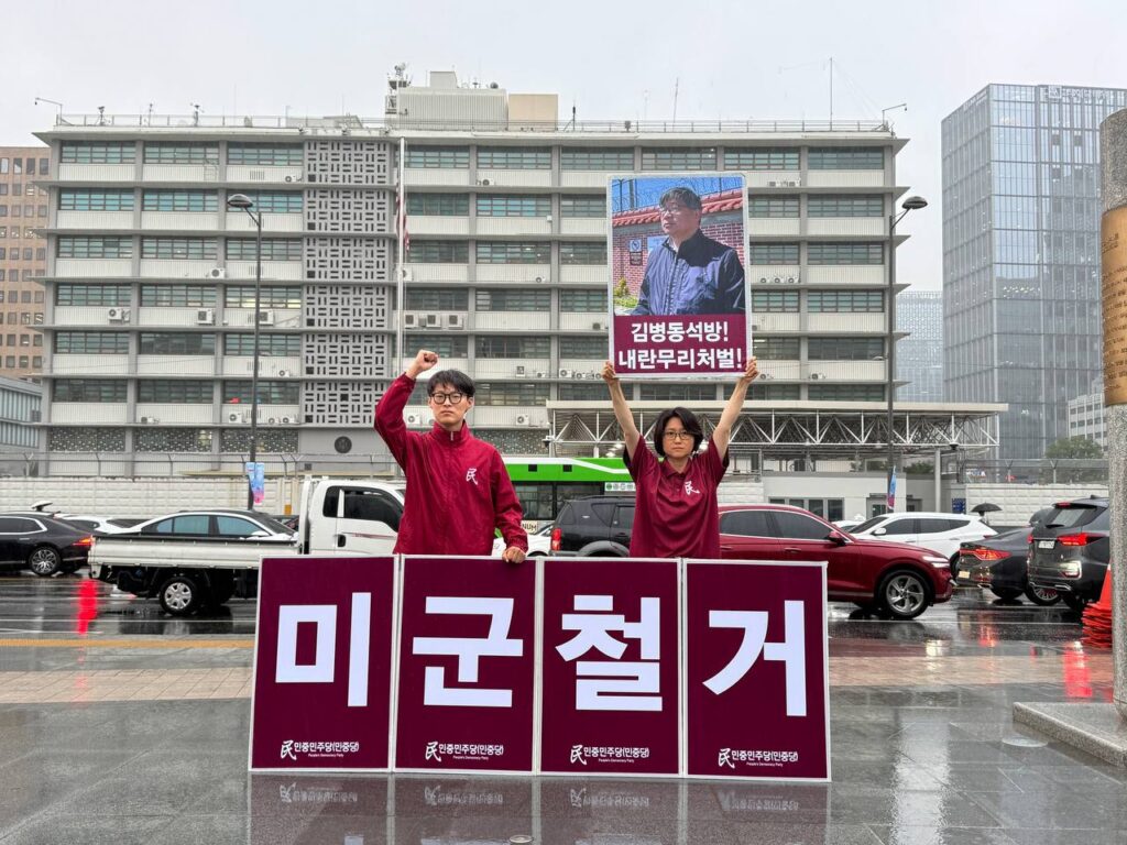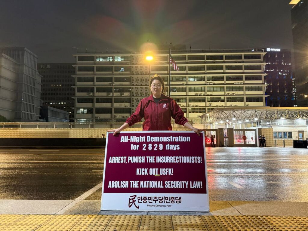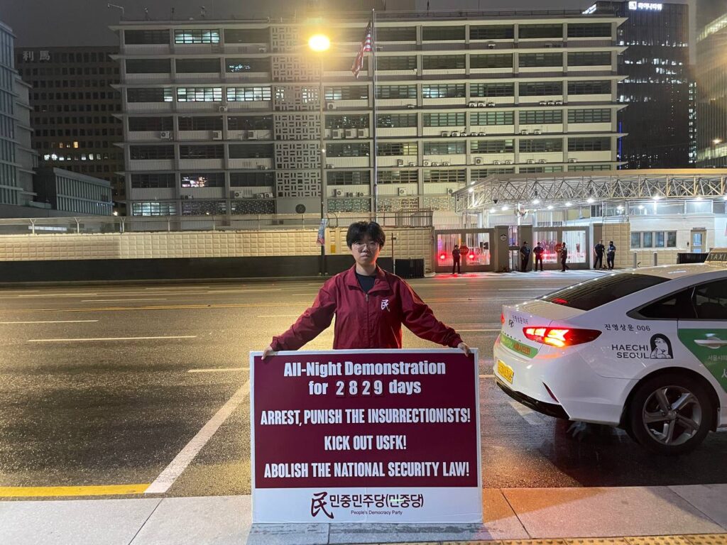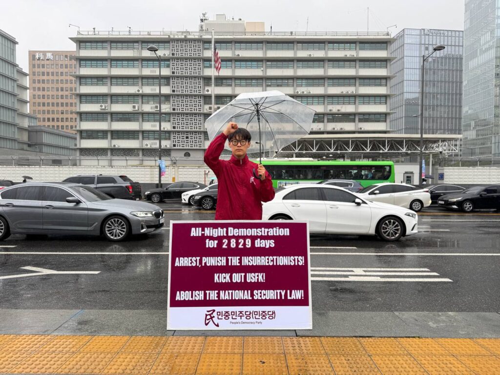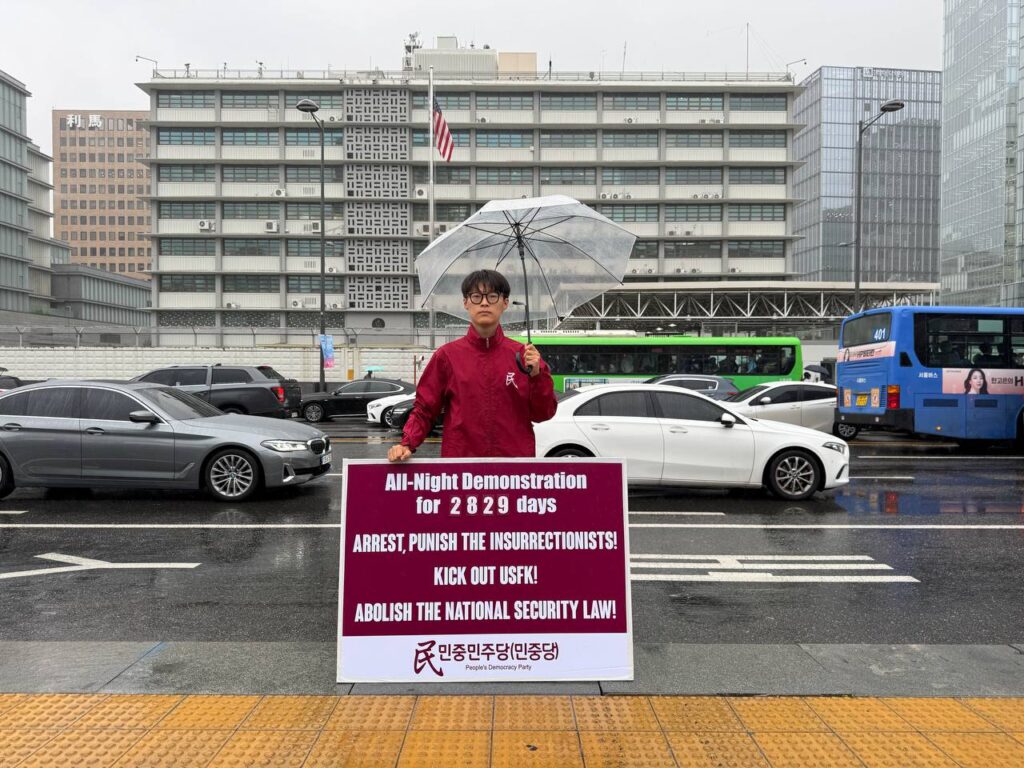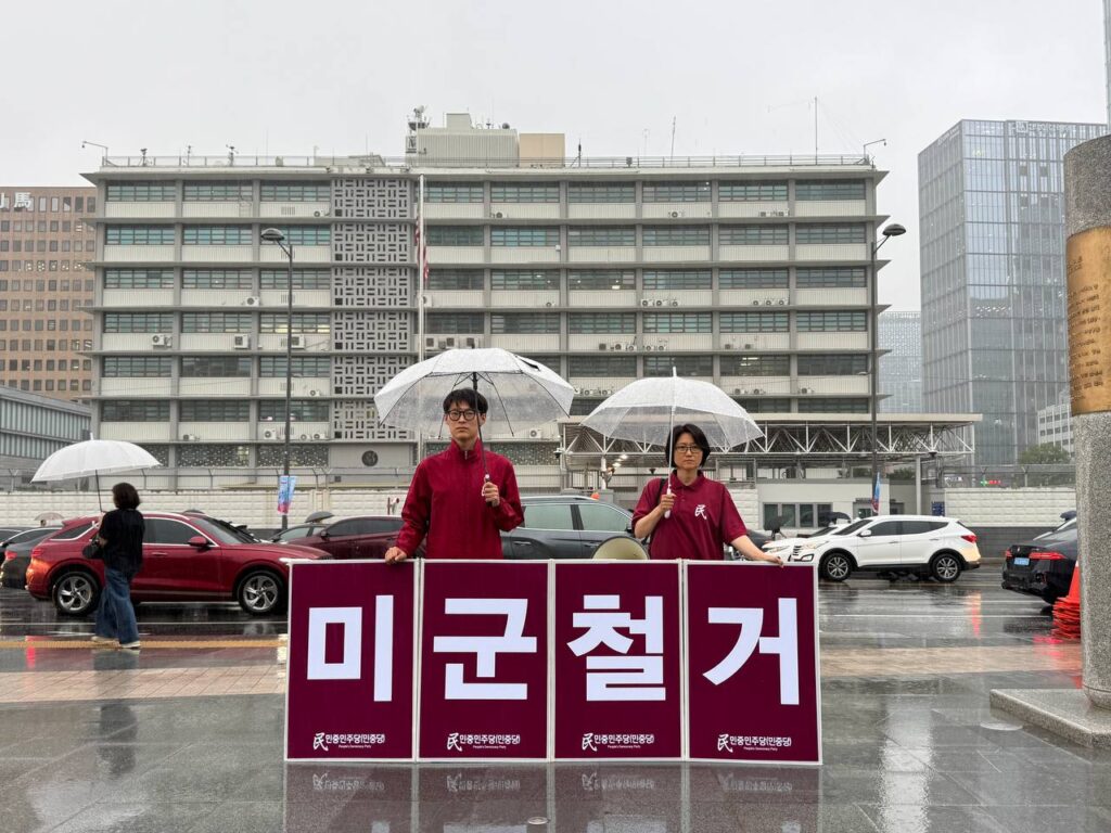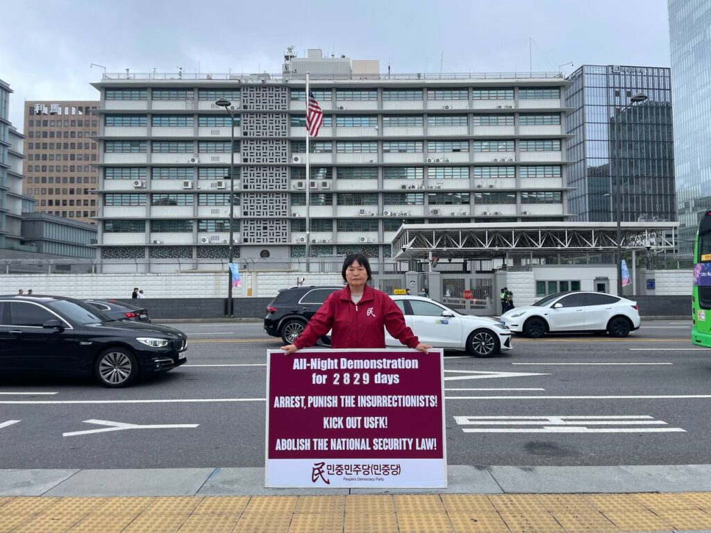25일 민중민주당(민중당)은 미대사관앞에서 <내전책동 내란무리처벌! 전쟁책동 미군철거!> 구호를 들고 평화시위를 3262일째 전개했다.
