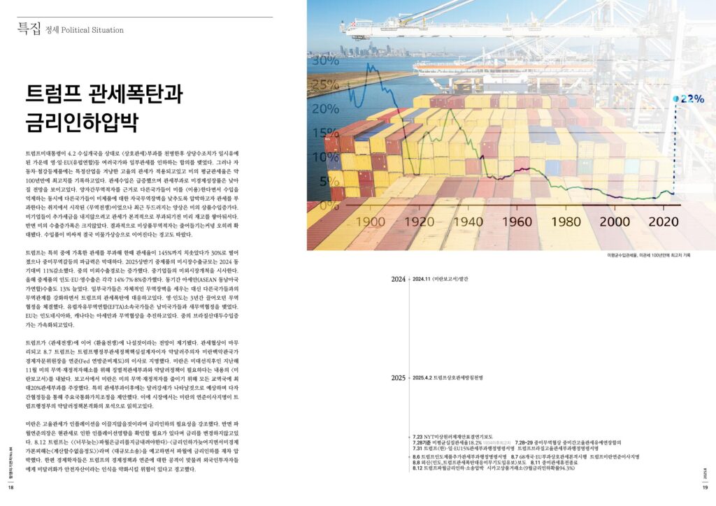 트럼프가 <관세전쟁>에 이어 <환율전쟁>에 나설것이라는 전망이 제기됐다. 관세협상이 마무리되고 8.7 트럼프는 트럼프행정부관세정책핵심설계자이자 약달러주의자 미란백악관국가경제자문위원장을 연준(Fed 연방준비제도)의 이사로 지명했다. 미란은 미대선직후인 지난해 11월 미의 무역·재정적자해소를 위해 징벌적관세부과와 약달러정책이 필요하다는 내용의 <미란보고서>를 내놨다. 보고서에서 미란은 미의 무역·재정적자를 줄이기 위해 모든 교역국에 최대20%관세부과를 주장했다. 특히 관세부과이후에는 달러강세가 나타날것으로 예상하며 다자간협정등을 통해 주요국통화가치조정을 제안했다. 이에 시장에서는 미란의 연준이사지명이 트럼프행정부의 약달러정책본격화의 포석으로 읽히고있다.