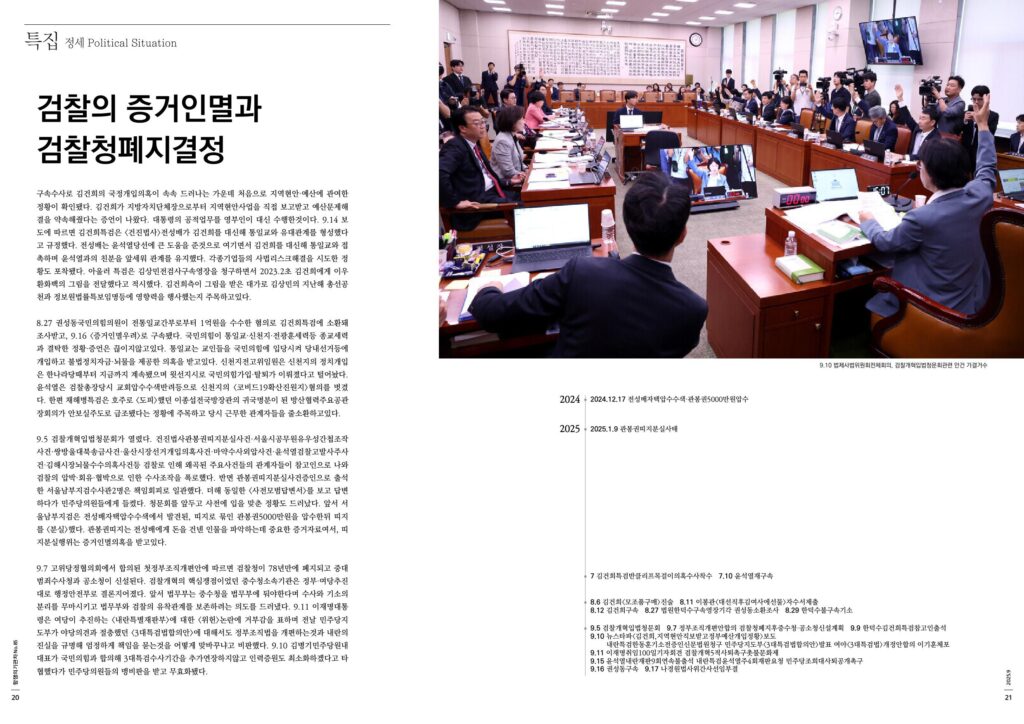 9.5 검찰개혁입법청문회가 열렸다. 건진법사관봉권띠지분실사건·서울시공무원유우성간첩조작사건·쌍방울대북송금사건·울산시장선거개입의혹사건·마약수사외압사건·윤석열검찰고발사주사건·김해시장뇌물수수의혹사건등 검찰로 인해 왜곡된 주요사건들의 관계자들이 참고인으로 나와 검찰의 압박·회유·협박으로 인한 수사조작을 폭로했다. 반면 관봉권띠지분실사건증인으로 출석한 서울남부지검수사관2명은 책임회피로 일관했다. 더해 동일한 <사전모범답변서>를 보고 답변하다가 민주당의원들에게 들켰다. 청문회를 앞두고 사전에 입을 맞춘 정황도 드러났다. 앞서 서울남부지검은 전성배자택압수수색에서 발견된, 띠지로 묶인 관봉권5000만원을 압수한뒤 띠지를 <분실>했다. 관봉권띠지는 전성배에게 돈을 건넨 인물을 파악하는데 중요한 증거자료여서, 띠지분실행위는 증거인멸의혹을 받고있다.