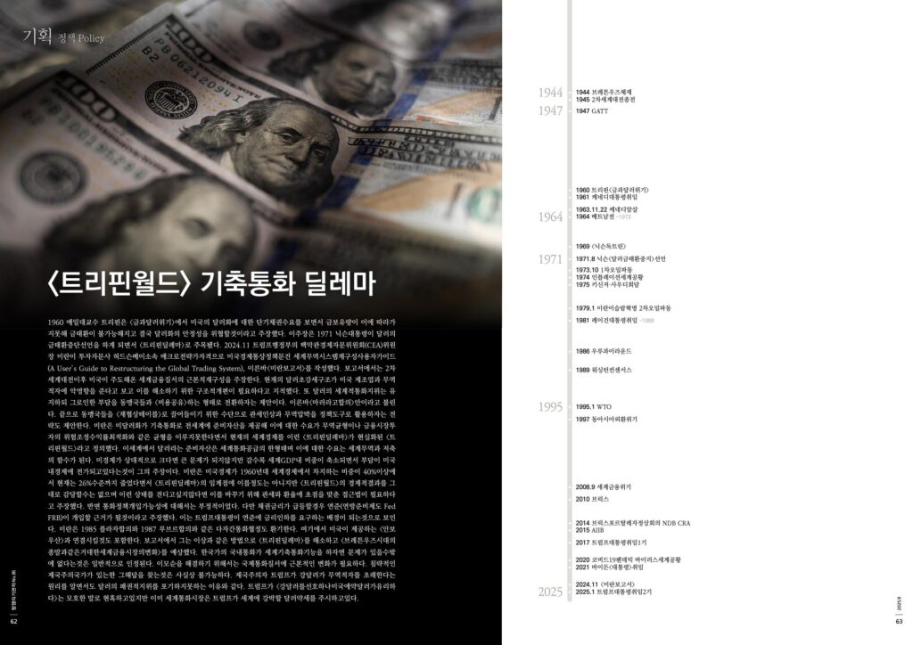 1960 예일대교수 트리핀은 <금과달러위기>에서 미국의 달러화에 대한 단기채권수요를 보면서 금보유량이 이에 따라가지못해 금태환이 불가능해지고 결국 달러화의 안정성을 위협할것이라고 주장했다. 이주장은 1971 닉슨대통령이 달러의 금태환중단선언을 하게 되면서 <트리핀딜레마>로 주목됐다. 2024.11 트럼프행정부의 백악관경제자문위원회(CEA)위원장 미란이 투자자문사 허드슨베이소속 매크로전략가자격으로 미국경제통상정책문건 세계무역시스템재구성사용자가이드(A User’s Guide to Restructuring the Global Trading System), 이른바<미란보고서>를 작성했다. 보고서에서는 2차세계대전이후 미국이 주도해온 세계금융질서의 근본적재구성을 주장한다. 현재의 달러초강세구조가 미국 제조업과 무역적자에 악영향을 준다고 보고 이를 해소하기 위한 구조적개편이 필요하다고 지적했다. 또 달러의 세계적통화지위는 유지하되 그로인한 부담을 동맹국들과 <비용공유>하는 형태로 전환하자는 제안이다. 이른바<마러라고합의>안이라고 불린다. 끝으로 동맹국들을 <재협상테이블>로 끌어들이기 위한 수단으로 관세인상과 무역압박을 정책도구로 활용하자는 전략도 제안한다. 미란은 미달러화가 기축통화로 전세계에 준비자산을 제공해 이에 대한 수요가 무역균형이나 금융시장투자의 위험조정수익률최적화와 같은 균형을 이루지못한다면서 현재의 세계경제를 이런 <트리핀딜레마>가 현실화된 <트리핀월드>라고 정의했다. 이세계에서 달러라는 준비자산은 세계통화공급의 한형태며 이에 대한 수요는 세계무역과 저축의 함수가 된다. 미경제가 상대적으로 크다면 큰 문제가 되지않지만 갈수록 세계GDP내 비중이 축소되면서 부담이 미국내경제에 전가되고있다는것이 그의 주장이다. 미란은 미국경제가 1960년대 세계경제에서 차지하는 비중이 40%이상에서 현재는 26%수준까지 줄었다면서 <트리핀딜레마>의 임계점에 이를정도는 아니지만 <트리핀월드>의 경제적결과를 그대로 감당할수는 없으며 이런 상태를 견디고싶지않다면 이를 바꾸기 위해 관세와 환율에 초점을 맞춘 접근법이 필요하다고 주장했다. 반면 통화정책개입가능성에 대해서는 부정적이었다. 다만 채권금리가 급등할경우 연준(연방준비제도 Fed FRB)이 개입할 근거가 될것이라고 주장했다. 이는 트럼프대통령이 연준에 금리인하를 요구하는 배경이 되는것으로 보인다. 미란은 1985 플라자합의와 1987 루브르합의와 같은 다자간통화협정도 환기한다. 여기에서 미국이 제공하는 <안보우산>과 연결시킬것도 포함한다. 보고서에서 그는 이상과 같은 방법으로 <트리핀딜레마>를 해소하고 <브레튼우즈시대의종말과같은거대한세계금융시장의변화>를 예상했다. 한국가의 국내통화가 세계기축통화기능을 하자면 문제가 있을수밖에 없다는것은 일반적으로 인정된다. 이모순을 해결하기 위해서는 국제통화질서에 근본적인 변화가 필요하다. 침략적인 제국주의국가가 있는한 그해답을 찾는것은 사실상 불가능하다. 제국주의자 트럼프가 강달러가 무역적자를 초래한다는 원리를 알면서도 달러의 패권적지위를 포기하지못하는 이유와 같다. 트럼프가 <강달러를선호하나미국에약달러가유리하다>는 모호한 말로 현혹하고있지만 이미 세계통화시장은 트럼프가 세계에 강박할 달러약세를 주시하고있다.