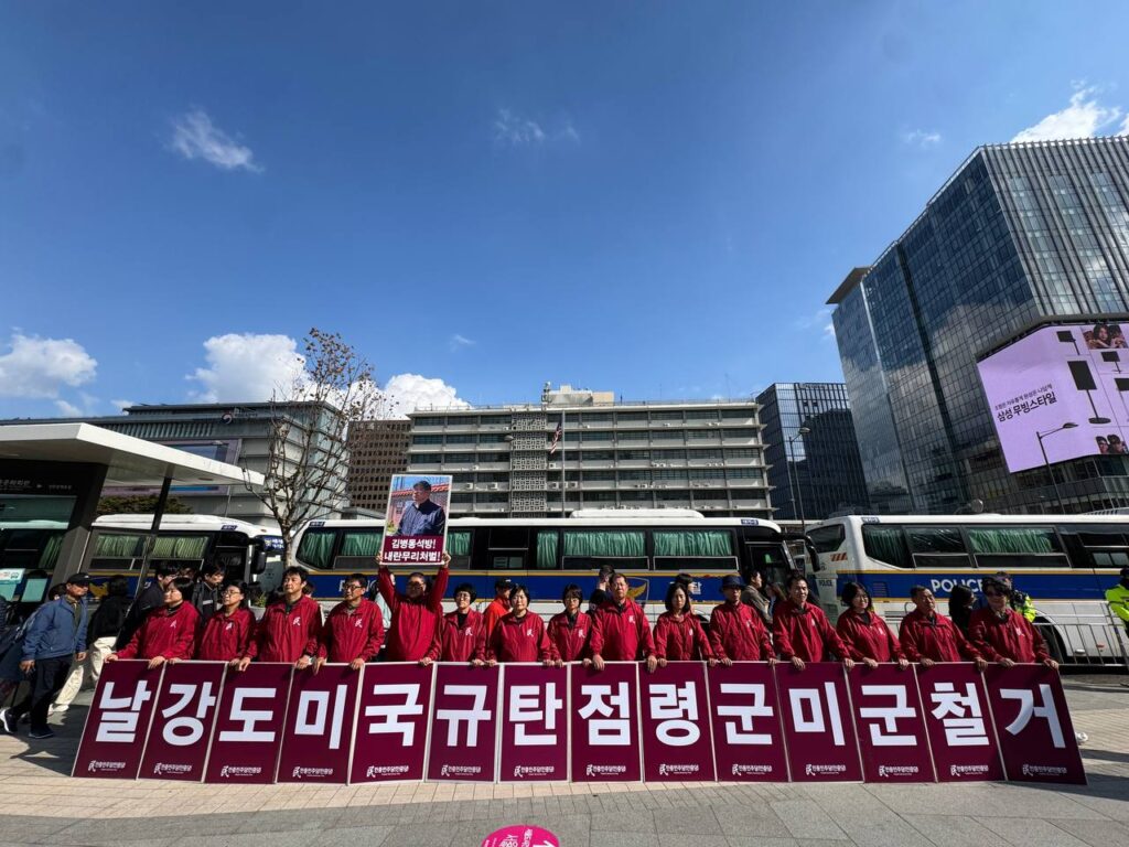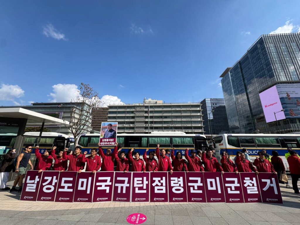 더해 <노예계약을 위한 트럼프의 방<한>을 결사반대하며 <한미동맹> 끊어라, 25%관세 감당하자는 민중의 힘을 믿는 길만이 살 길임을 확신한다. 우리민중의 힘을 믿고 굴욕적 대미투자 거부해야 한다. 경제수탈지렛대로 전쟁을 끌어들이는 미군 철거, 반미반제 투쟁으로 나아가야 근본적 문제가 해결될 것이다.>라고 단언했다.