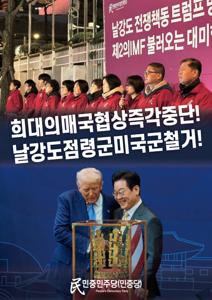 – <약탈자트럼프에 왕관 바친 이재명> … 국제민중행동 <한미관세·투자협정 즉각 폐기해야> (참세상, 2025.10.31)